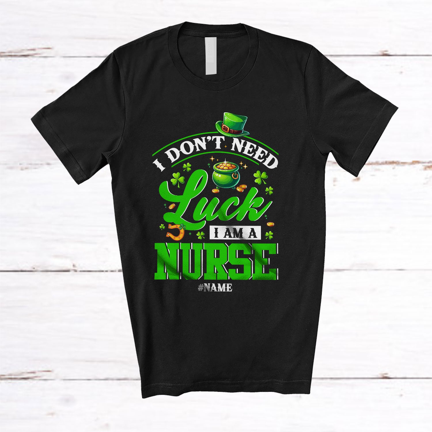 Personalized Don't Need Luck I'm A Nurse; Happy St. Patrick's Day Custom Name Jobs Shamrock T-Shirt