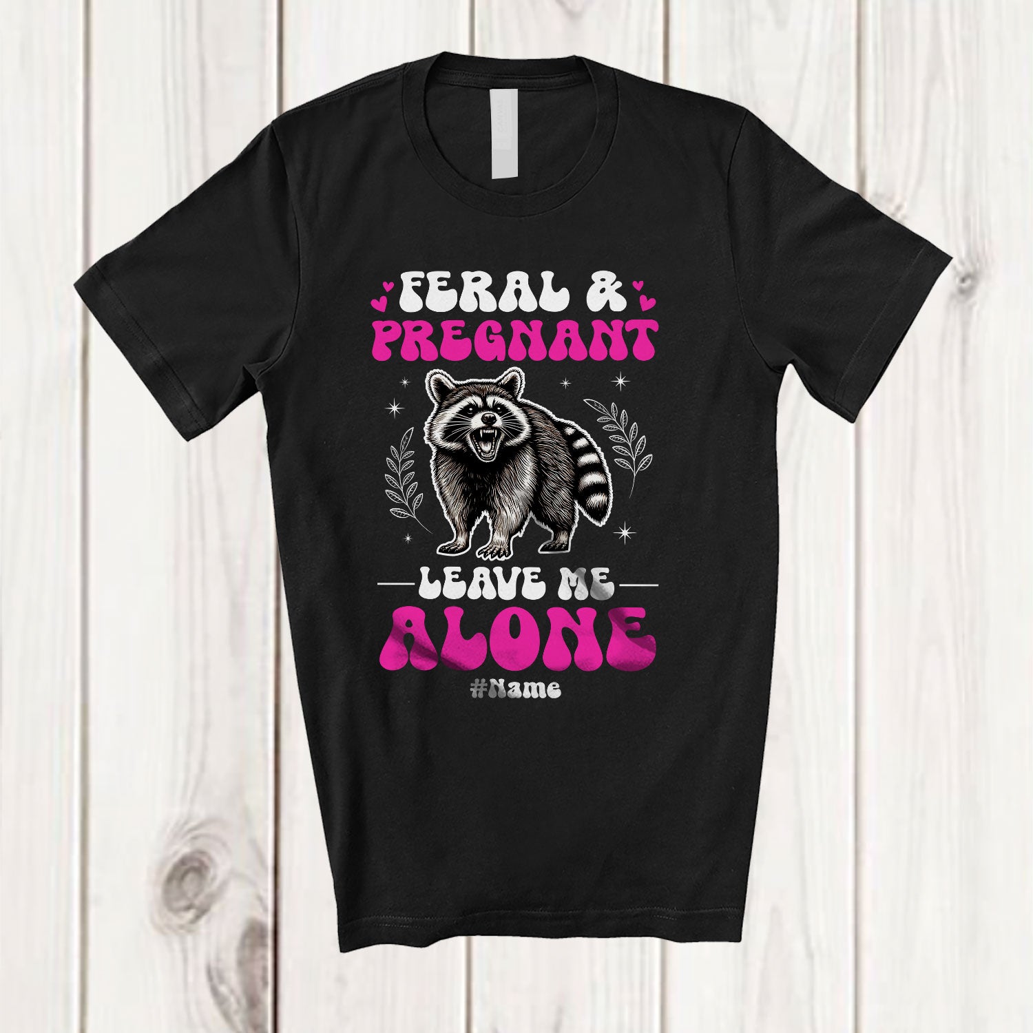 Personalized Feral and Pregnant Leave Me Alone; Lovely Pregnancy Custom Name Raccoon T-Shirt