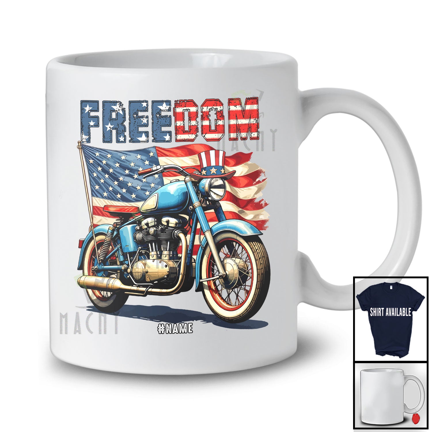 Personalized Freedom; Awesome 4th Of July American Flag Custom Name Motorcycle; Patriotic T-Shirt. This cotton t-shirt is a durable staple product with a classic fit. One of the most popular items, it has a relaxed style made for everyday and casual wear.