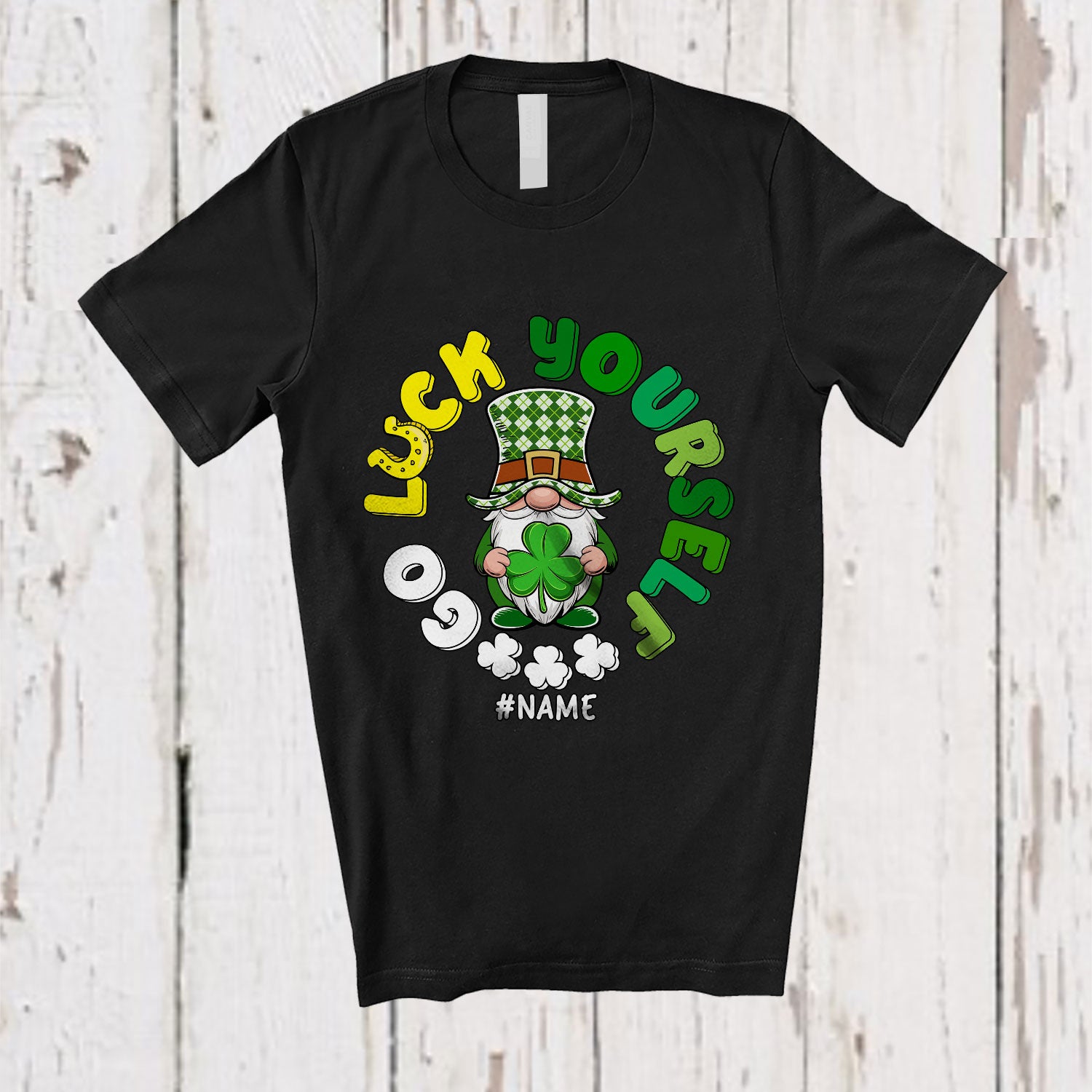 Personalized Go Luck Yourself; Amazing St. Patrick's Day Custom Name Gnome Holding Shamrock T-Shirt