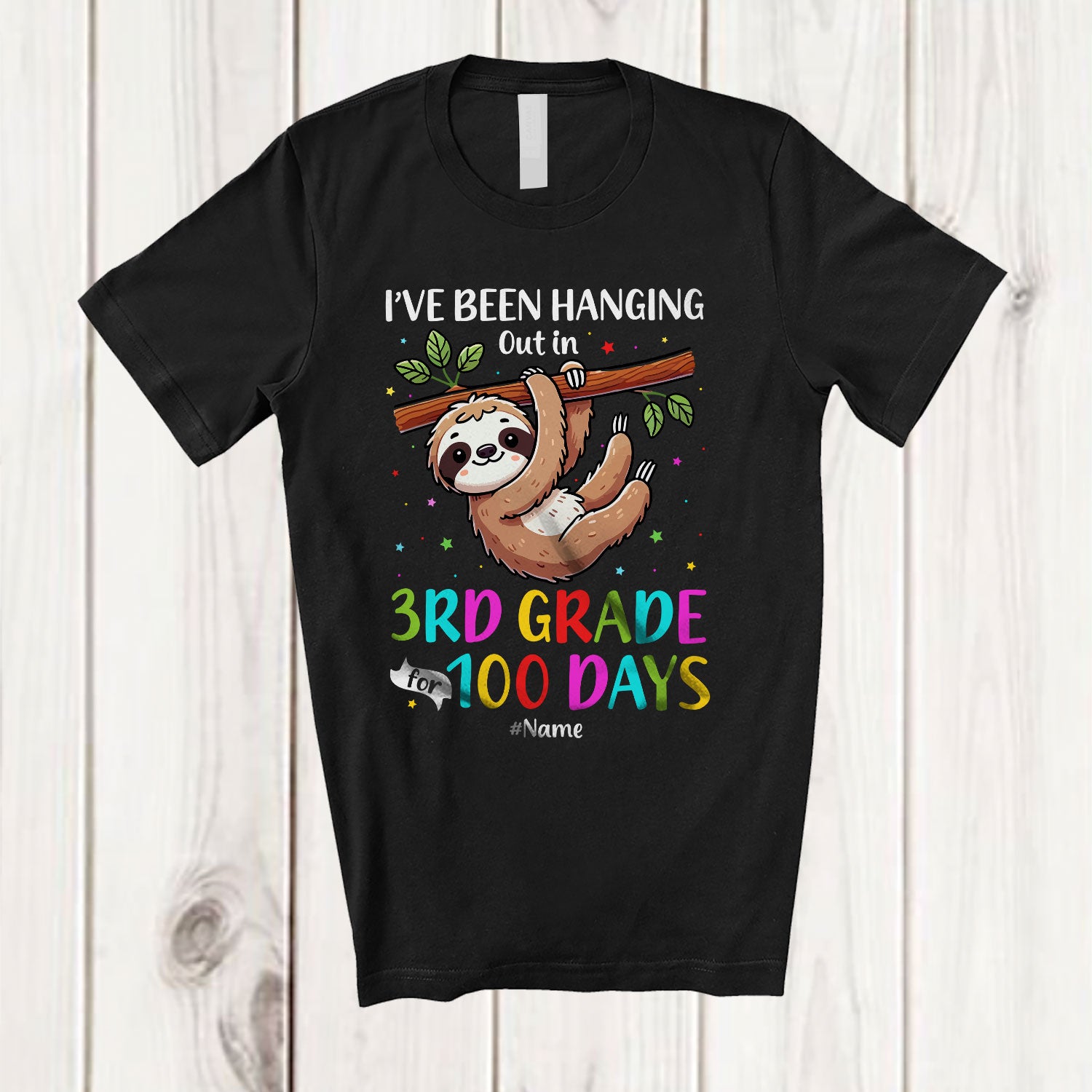 • Personalized Hanging Out In 3rd Grade For 100 Days; Adorable Sloth Custom Name Students T-Shirt. This cotton t-shirt is a durable staple product with a classic fit. One of the most popular items, it has a relaxed style made for everyday and casual wear.