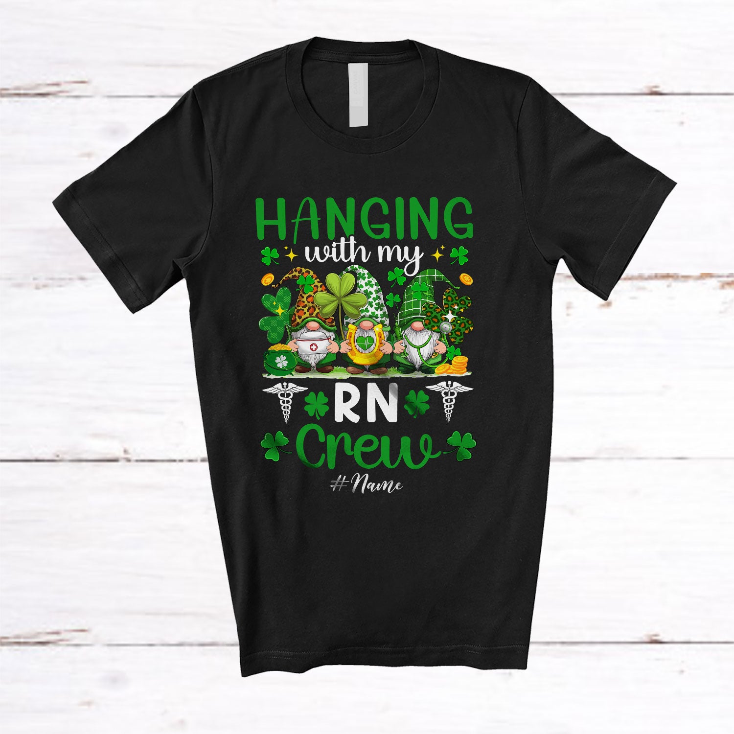 • Personalized Hanging With My RN Crew; Lovely St. Patrick's Day Gnome; Custom Name Nurse T-Shirt. This cotton t-shirt is a durable staple product with a classic fit. One of the most popular items, it has a relaxed style made for everyday and casual wear.