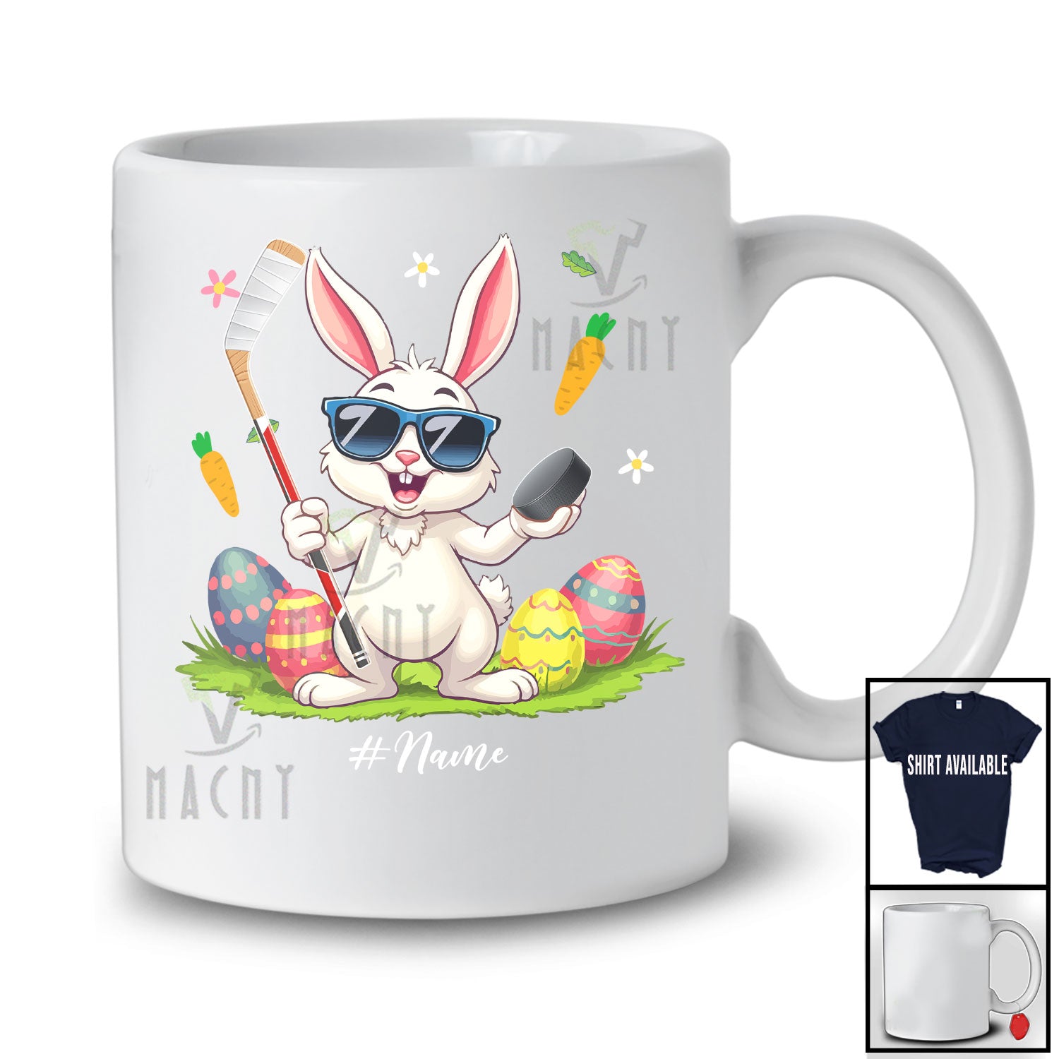 The Personalized Happy Easter; Joyful Bunny Playing Hockey; Custom Name Player Egg Hunting T-Shirt is evocative, to say the least, but that's why you're drawn to it in the first place.