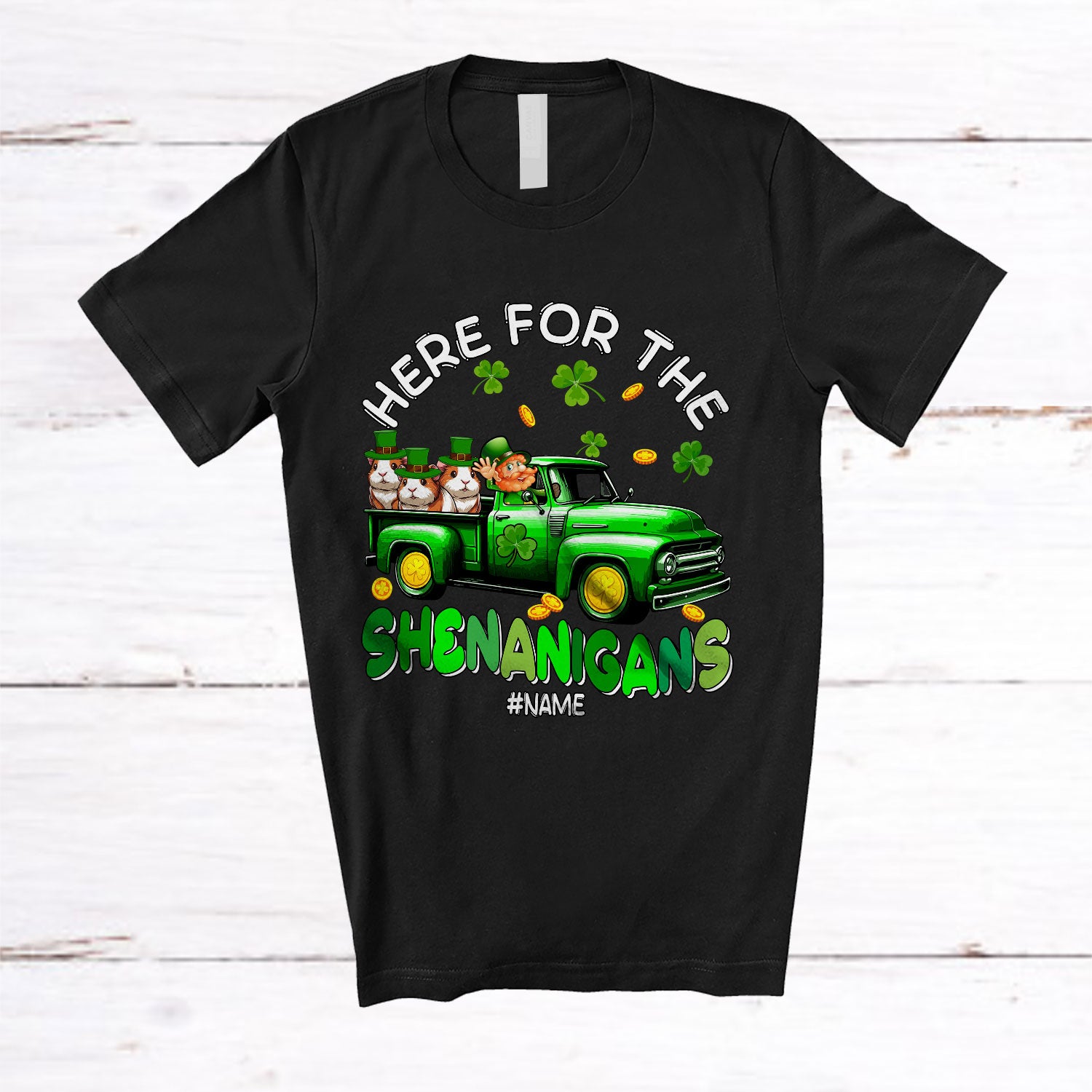Personalized Here For Shenanigans; Lovely St. Patrick's Day Leprechaun Truck; Custom Name Guinea Pig T-Shirt. This cotton t-shirt is a durable staple product with a classic fit. One of the most popular items, it has a relaxed style made for everyday and casual wear.