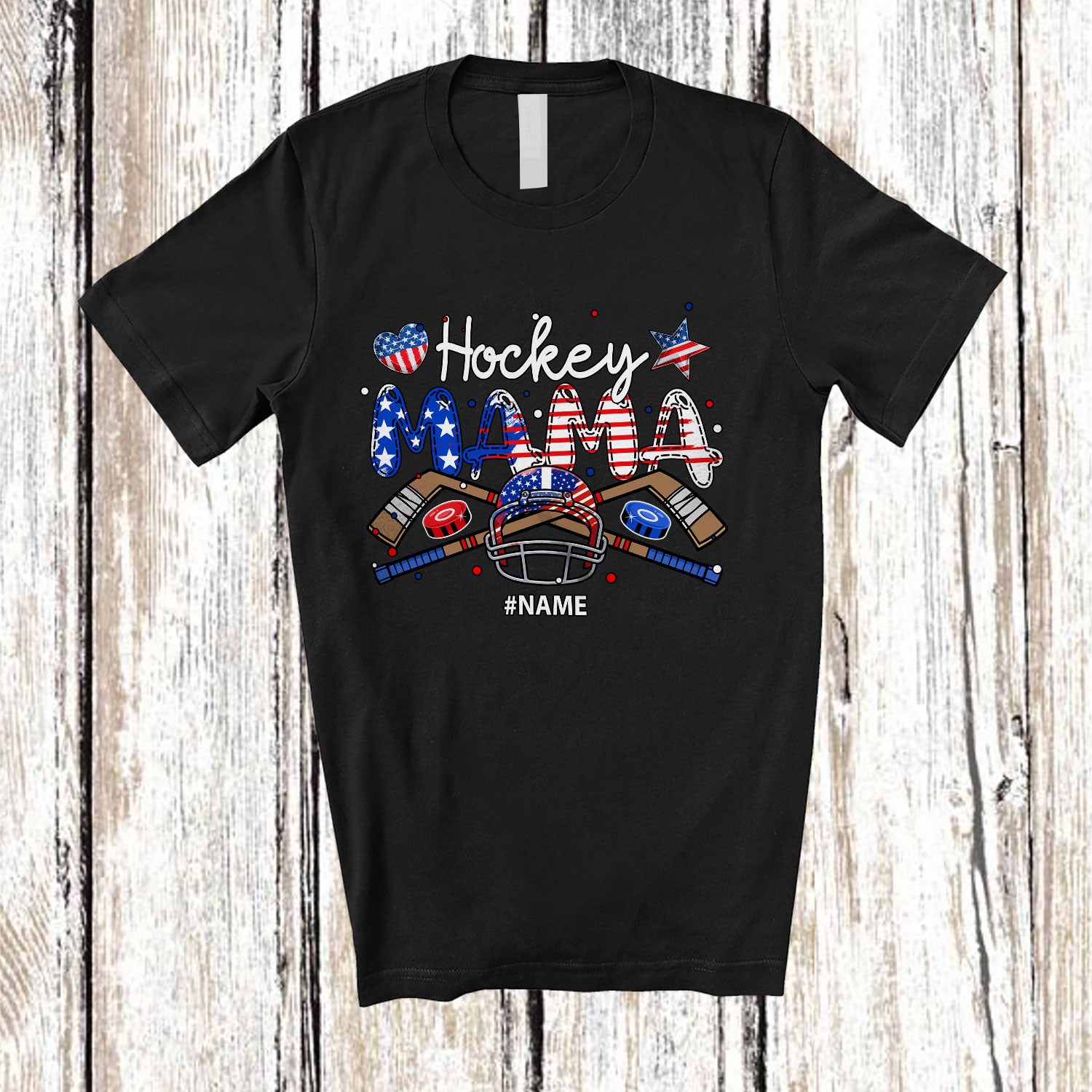 new MacnyStore - Personalized Hockey Mama; Awesome 4th Of July Custom Name Hockey Player; Patriotic Family T-Shirt – Macnystore