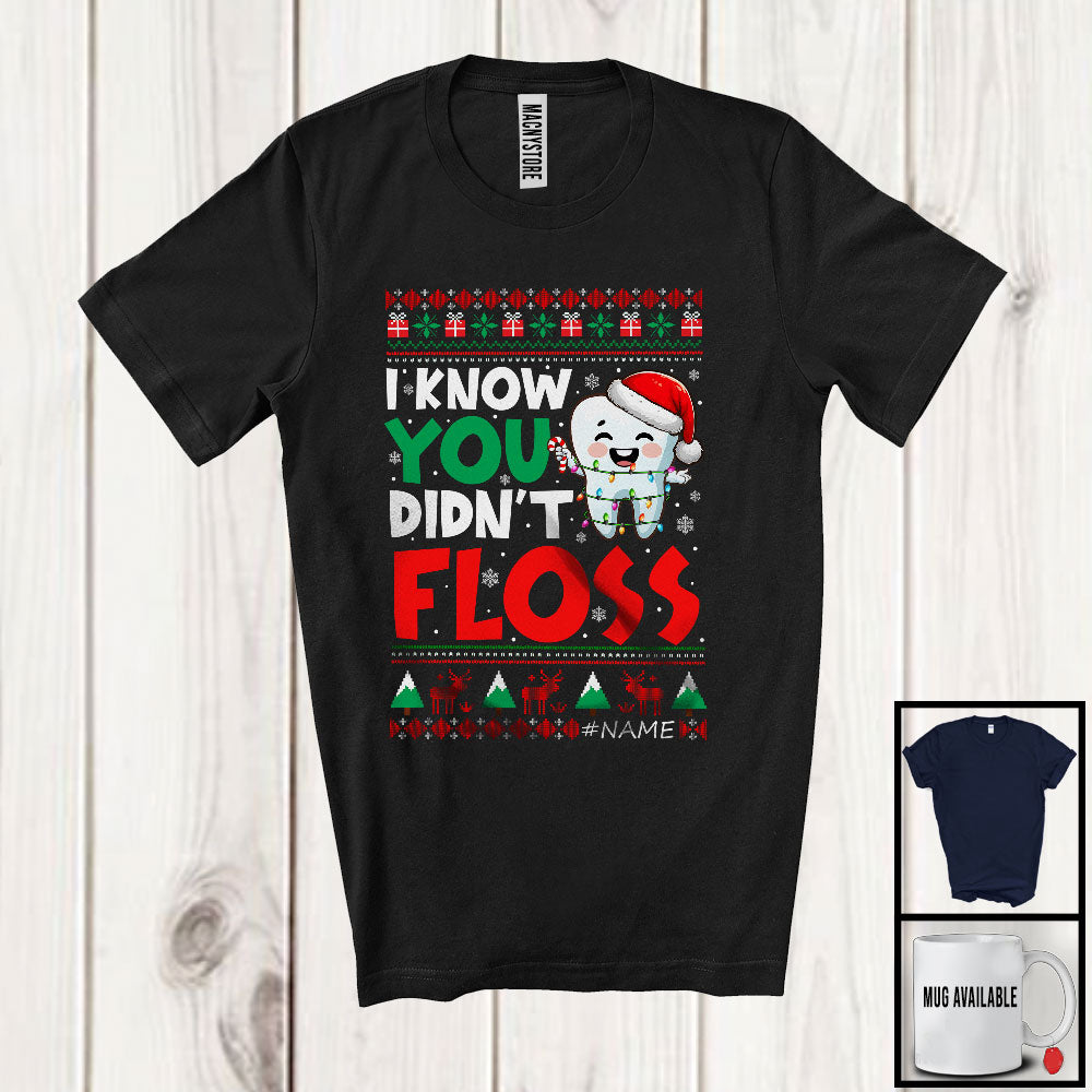 Personalized I Know You Didn't Floss; Joyful Christmas Sweater Tooth; Custom Name Dentist Dental T-Shirt
