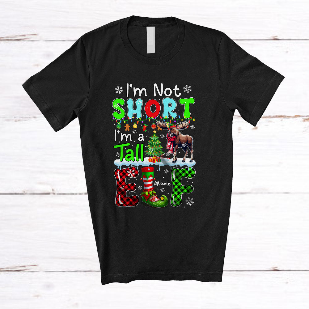 Personalized I'm Not Short I'm A Tall Elf; Lovely Christmas Custom Name Moose; Plaid Family T-Shirt
