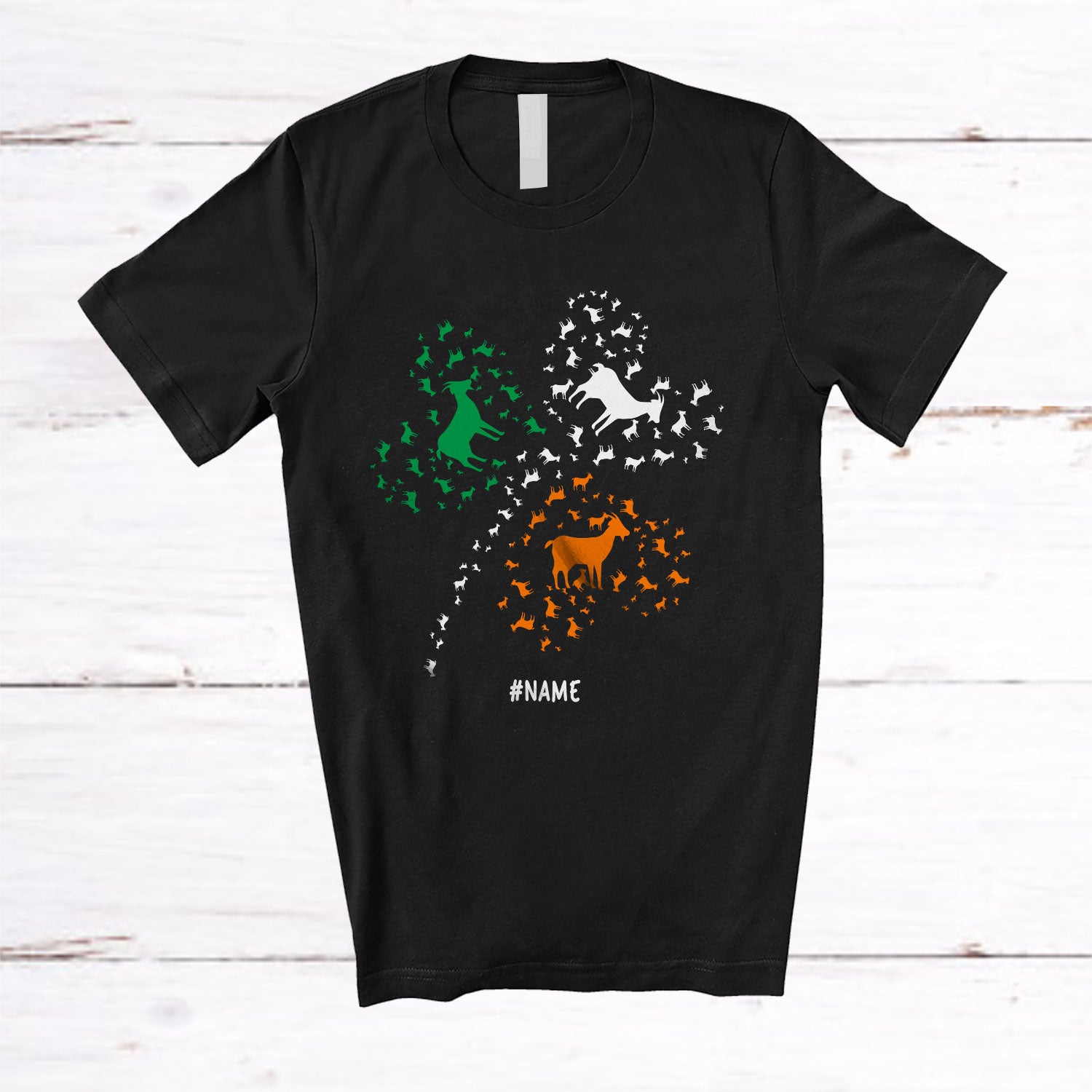 Personalized Irish Goat Shamrock Shape; Joyful St. Patrick's Day Custom Name Farmer; Family T-Shirt