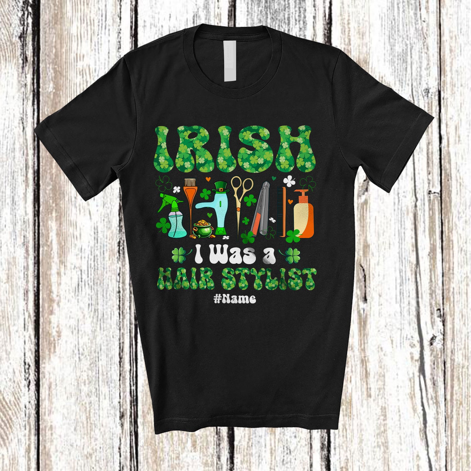 • Personalized Irish I Was A Hair Stylist; Joyful St. Patrick's Day Shamrocks; Custom Name Job T-Shirt. This cotton t-shirt is a durable staple product with a classic fit. One of the most popular items, it has a relaxed style made for everyday and casual wear.
