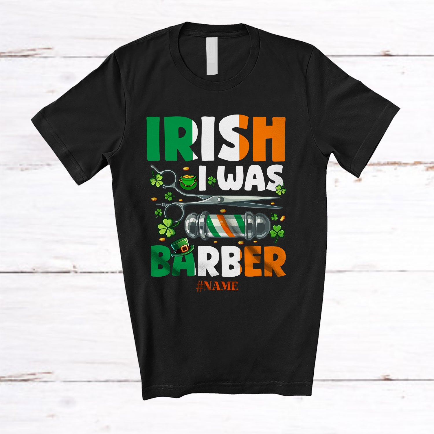 Personalized Irish I Was Barber; Fantastic St. Patrick's Day Lucky Shamrocks; Custom Name Family T-Shirt. This cotton t-shirt is a durable staple product with a classic fit. One of the most popular items, it has a relaxed style made for everyday and casual wear.