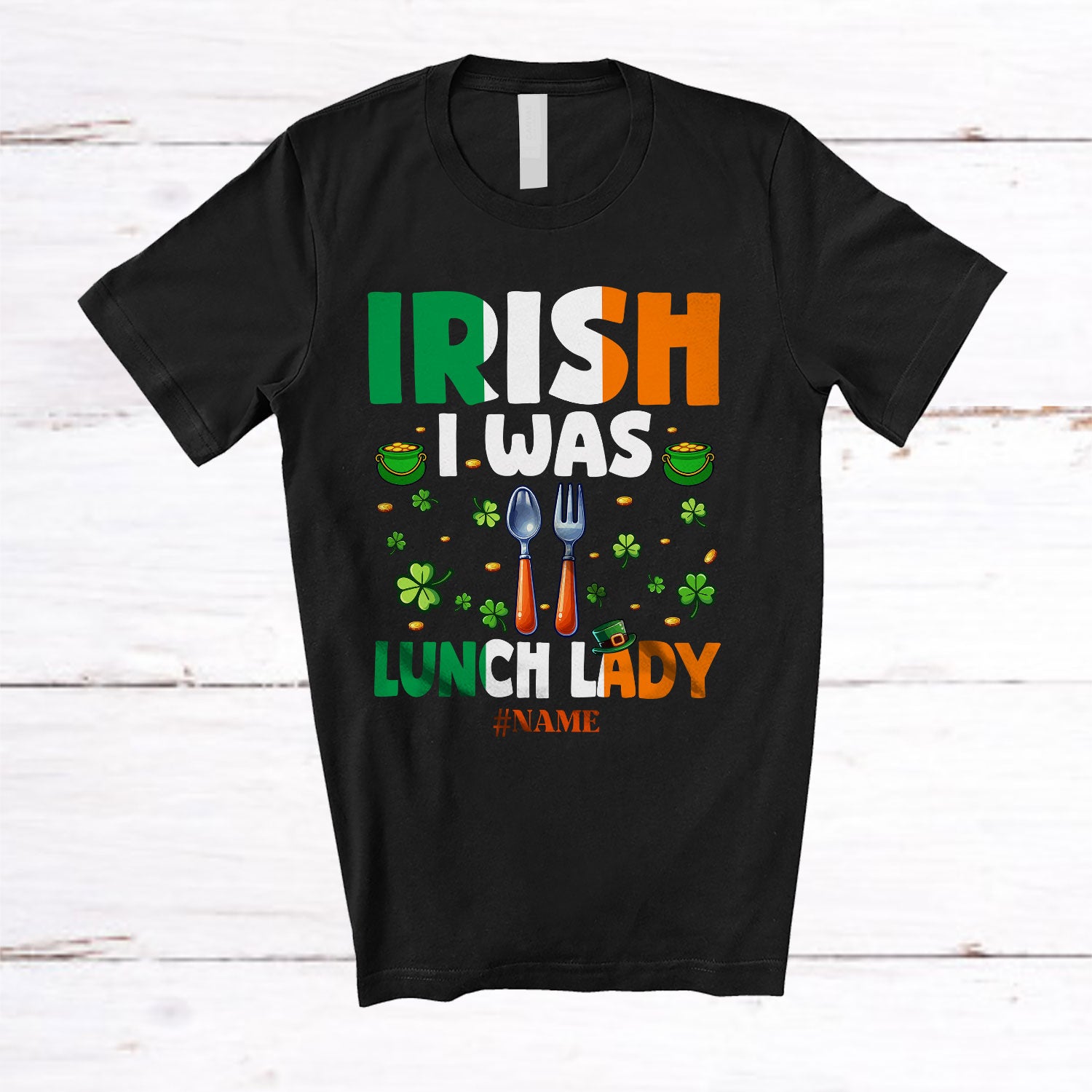 • Personalized Irish I Was Lunch Lady; Fantastic St. Patrick's Day Lucky Shamrocks; Custom Name Family T-Shirt. This cotton t-shirt is a durable staple product with a classic fit. One of the most popular items, it has a relaxed style made for everyday and casual wear.