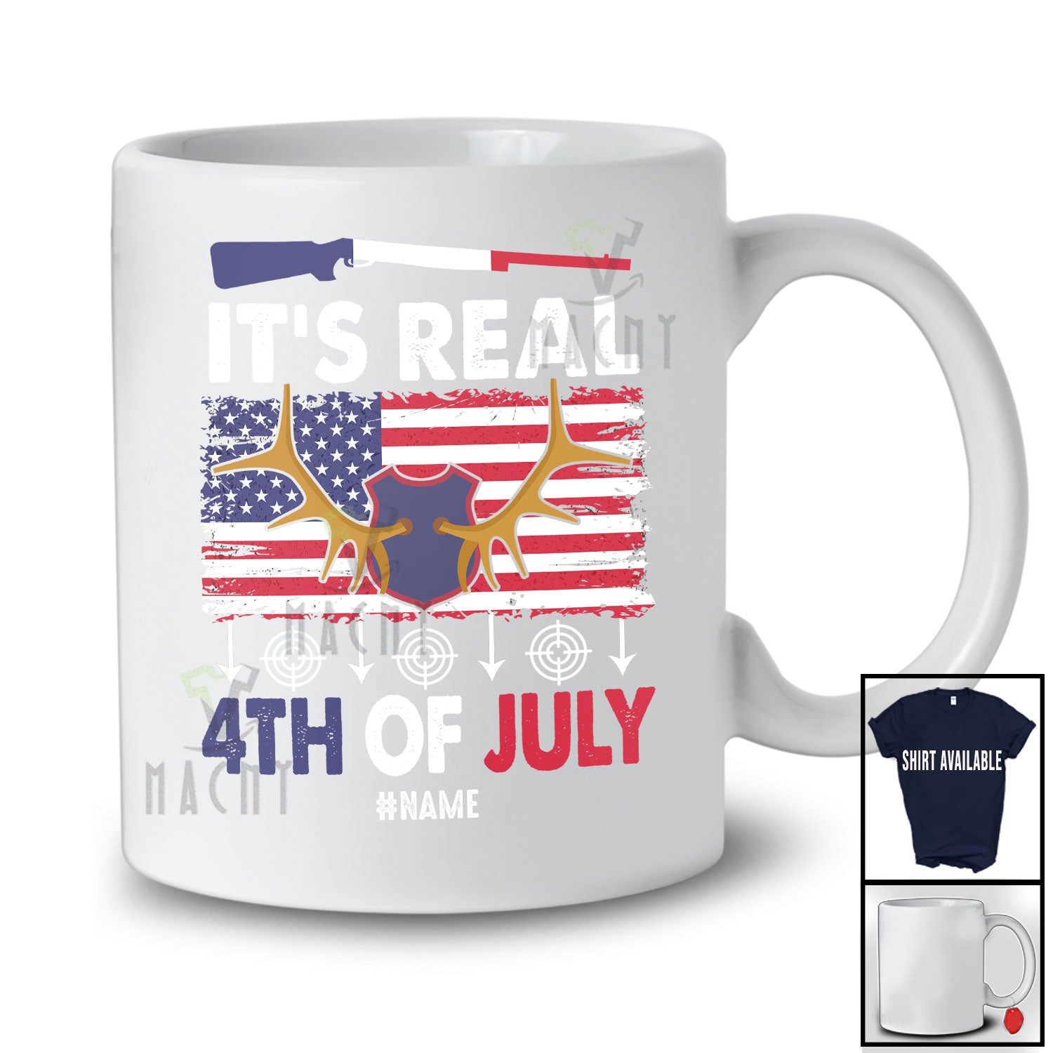 Personalized It's Real 4th of July; Joyful Custom Name Player Hunting Tools; US Flag Patriotic T-Shirt. This cotton t-shirt is a durable staple product with a classic fit. One of the most popular items, it has a relaxed style made for everyday and casual wear.