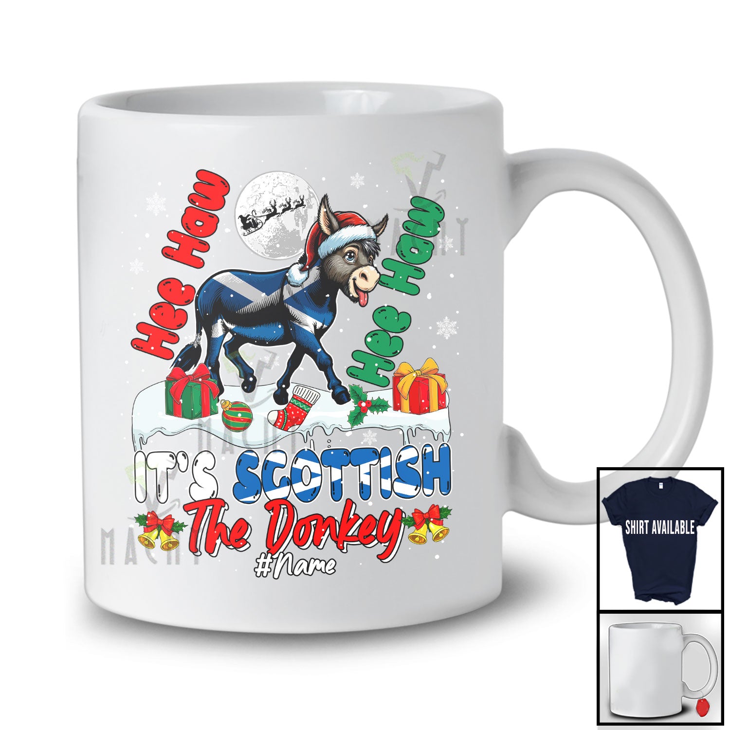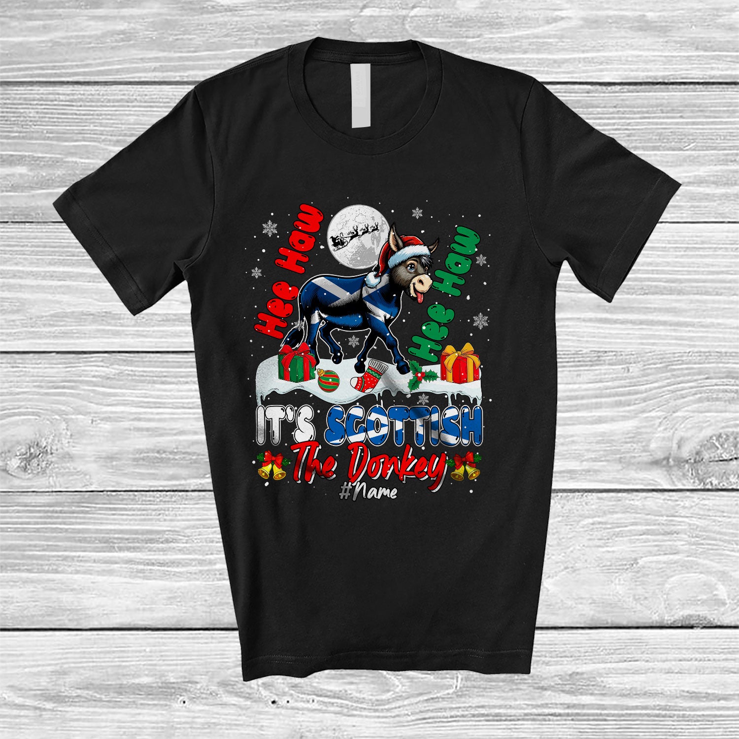 • Personalized It's Scottish The Donkey; Amazing Christmas Farmer; Custom Name Santa Donkey T-Shirt. This cotton t-shirt is a durable staple product with a classic fit. One of the most popular items, it has a relaxed style made for everyday and casual wear.