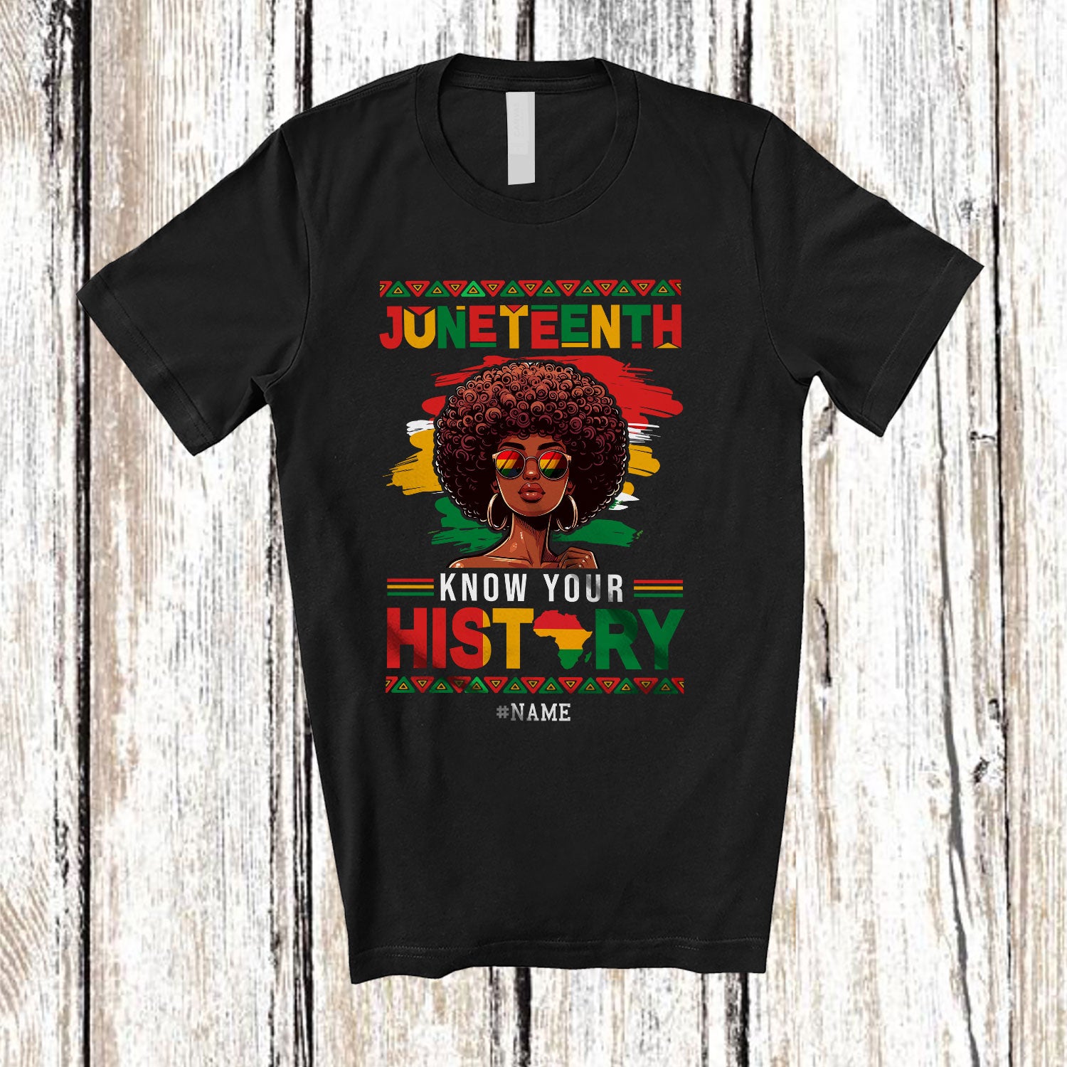 • Personalized Juneteenth Know Your History; Proud Custom Name Anti 4th Of July African Women Afro T-Shirt. This cotton t-shirt is a durable staple product with a classic fit. One of the most popular items, it has a relaxed style made for everyday and casual wear.