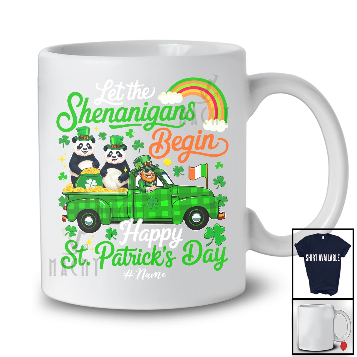 Personalized Let The Shenanigans Begin; Lovely St. Patrick's Day Custom Name Panda On Pickup T-Shirt