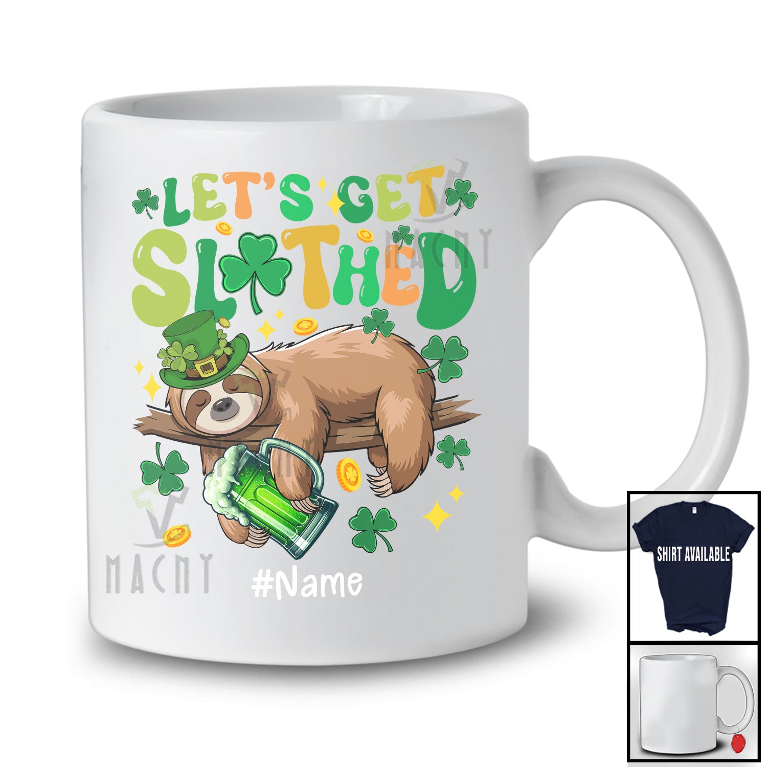 This Personalized Let's Get Slothed; Amusing St. Patrick's Day Groovy Custom Name Sloth; Drinking Beer T-Shirt is great idea gift for your family, friends in this birthday, christmas, mother's day, father's day, patrick's day or any holiday.