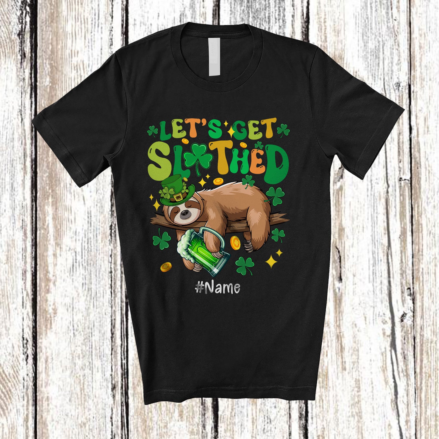 Personalized Let's Get Slothed; Amusing St. Patrick's Day Groovy Custom Name Sloth; Drinking Beer T-Shirt