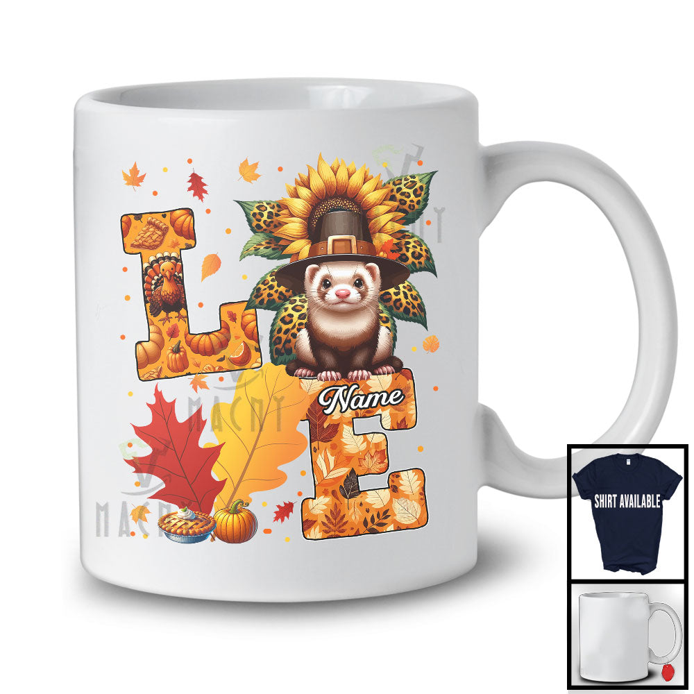Personalized LOVE, Adorable Thanksgiving Custom Name Ferret, Sunflower Fall Leaves T-Shirt