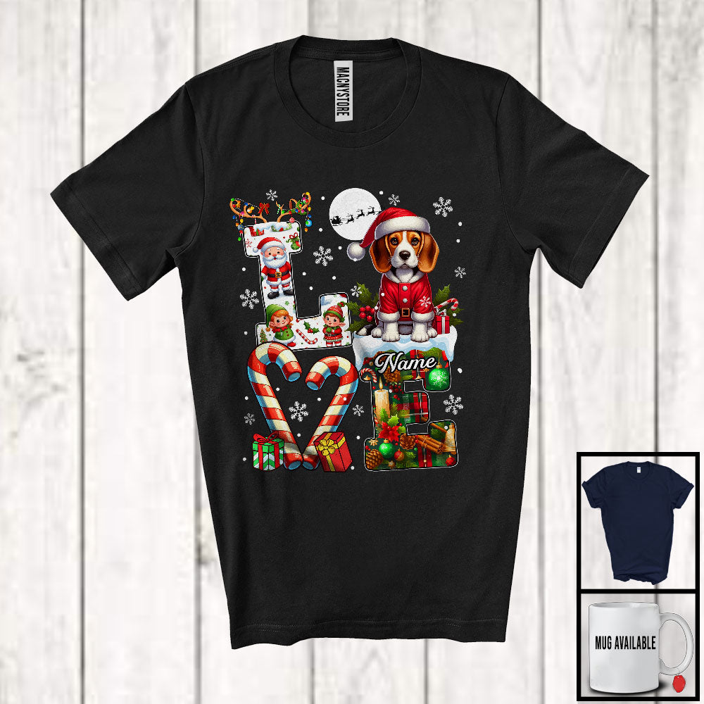 Personalized LOVE, Awesome Christmas Custom Name Beagle Santa, Candy Cane Plaid Animal T-Shirt