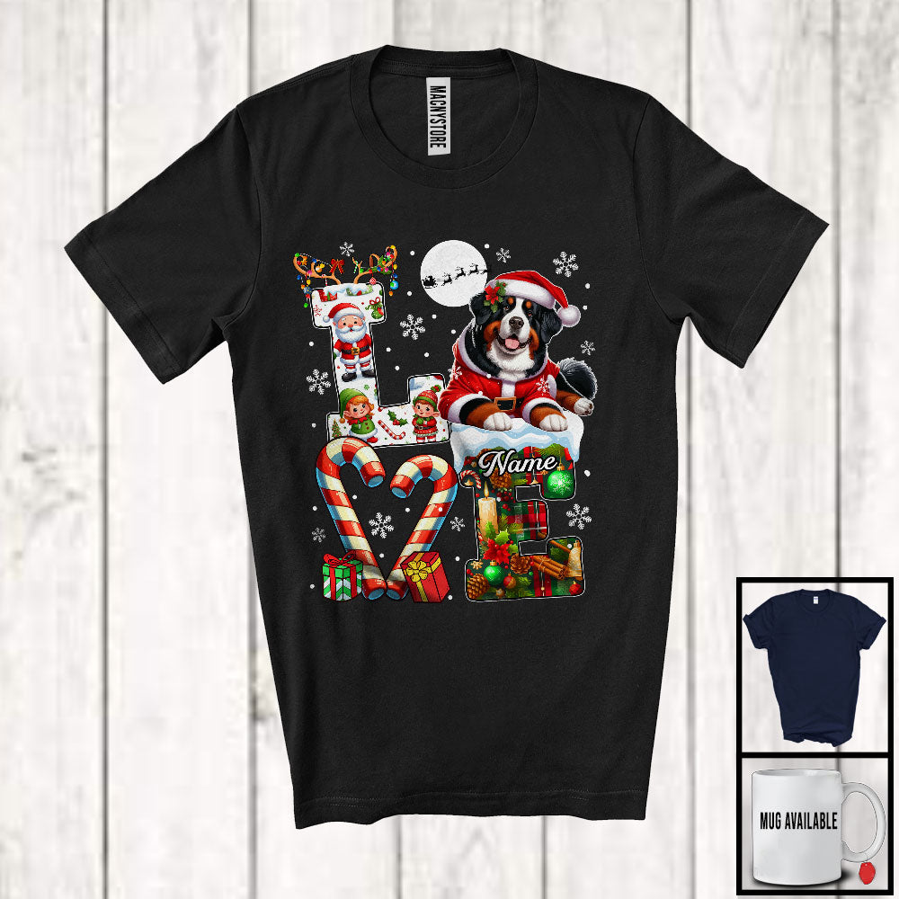 Personalized LOVE, Awesome Christmas Custom Name Bernese Mountain Santa, Plaid Animal T-Shirt