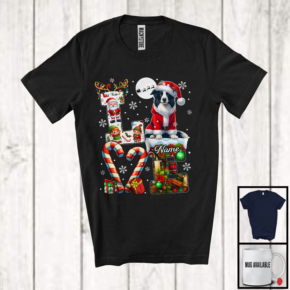 Personalized LOVE, Awesome Christmas Custom Name Border Collie Santa, Plaid Animal T-Shirt