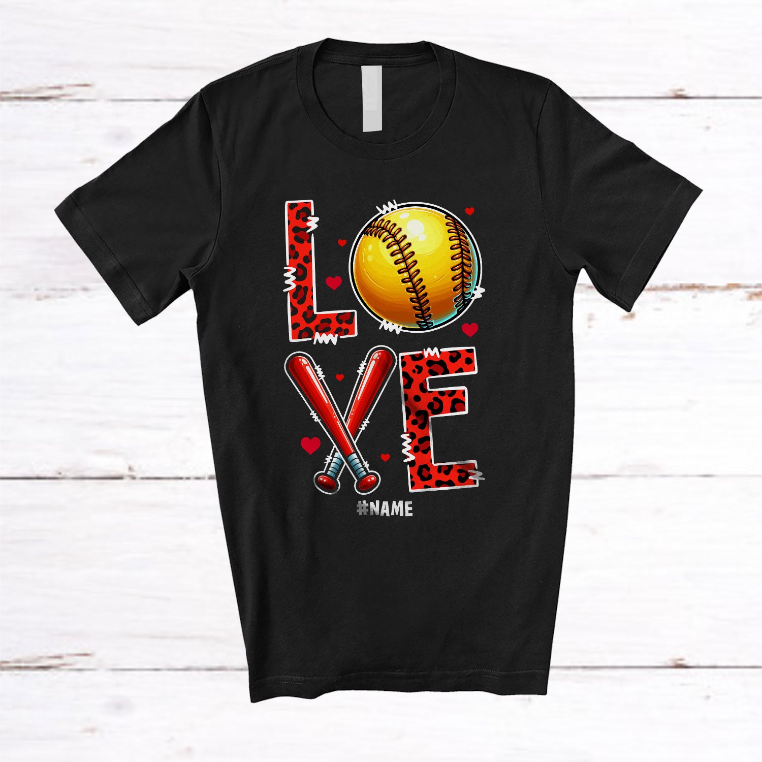 Personalized Love; Joyful Valentine's Day Custom Name Softball Player; Leopard Hearts T-Shirt