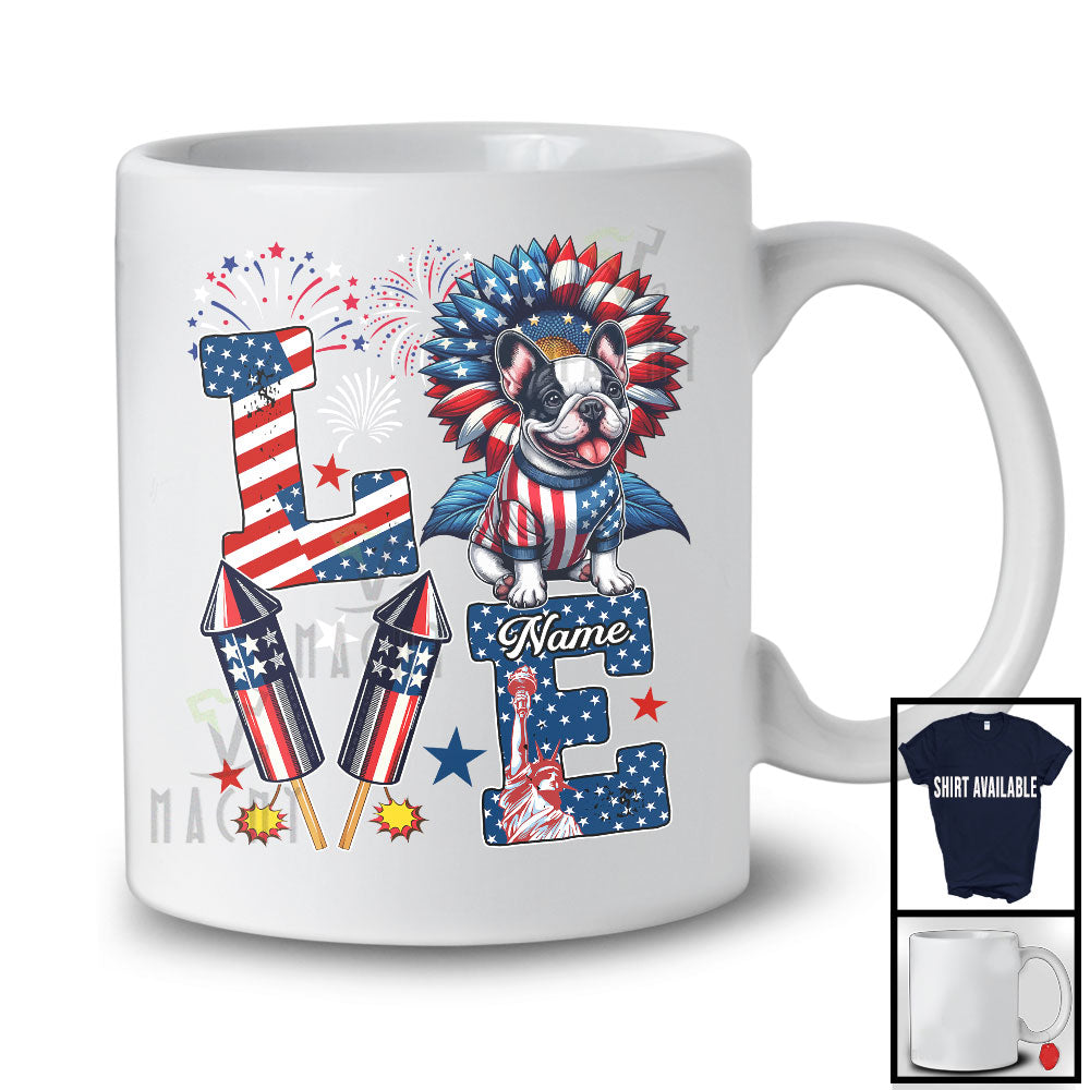 Personalized Love, Lovely 4th Of July Custom Name French Bulldog, Sunflower US Flag Patriotic T-Shirt