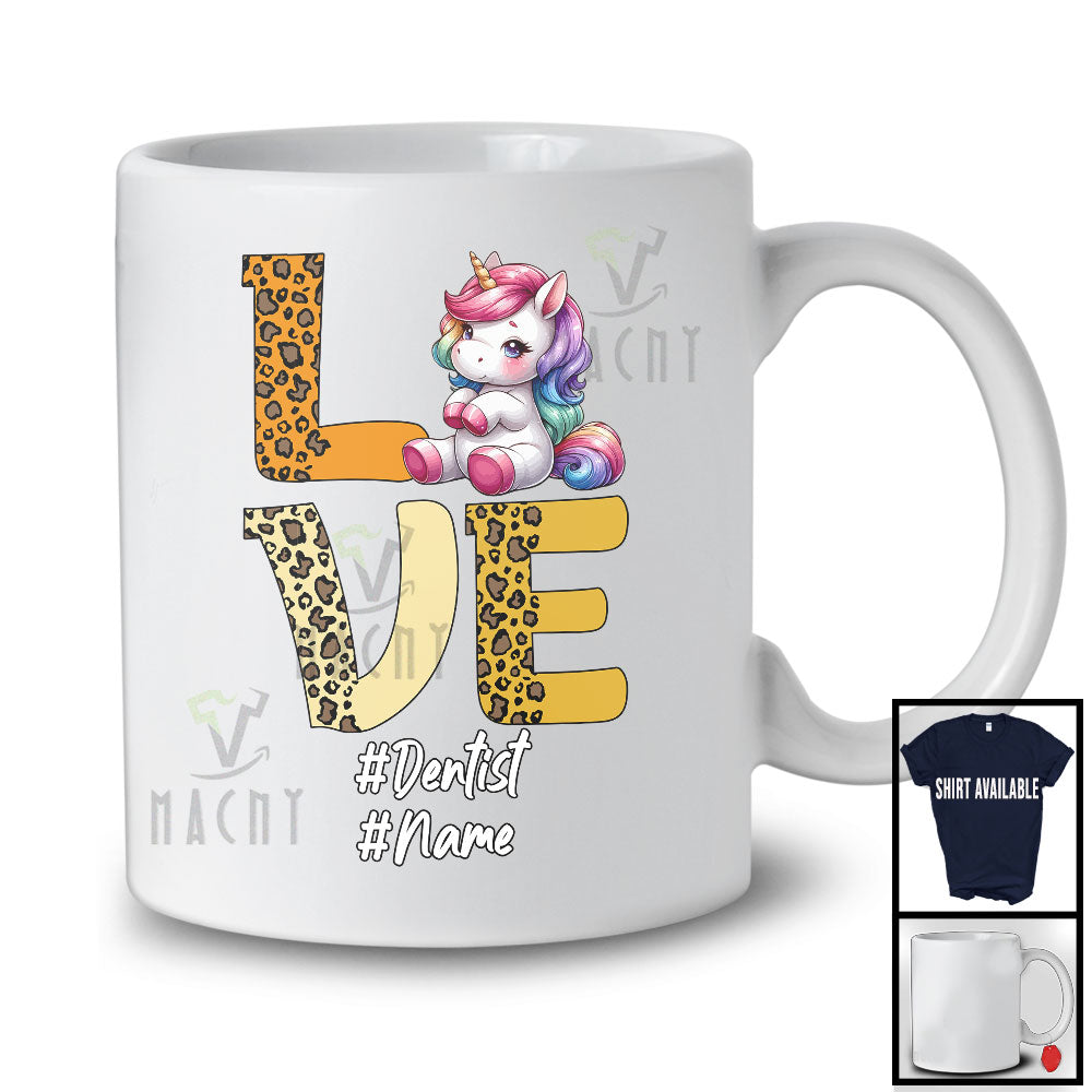 Personalized LOVE; Lovely Leopard Unicorn Lover Custom Name; Dentist Careers Jobs T-Shirt