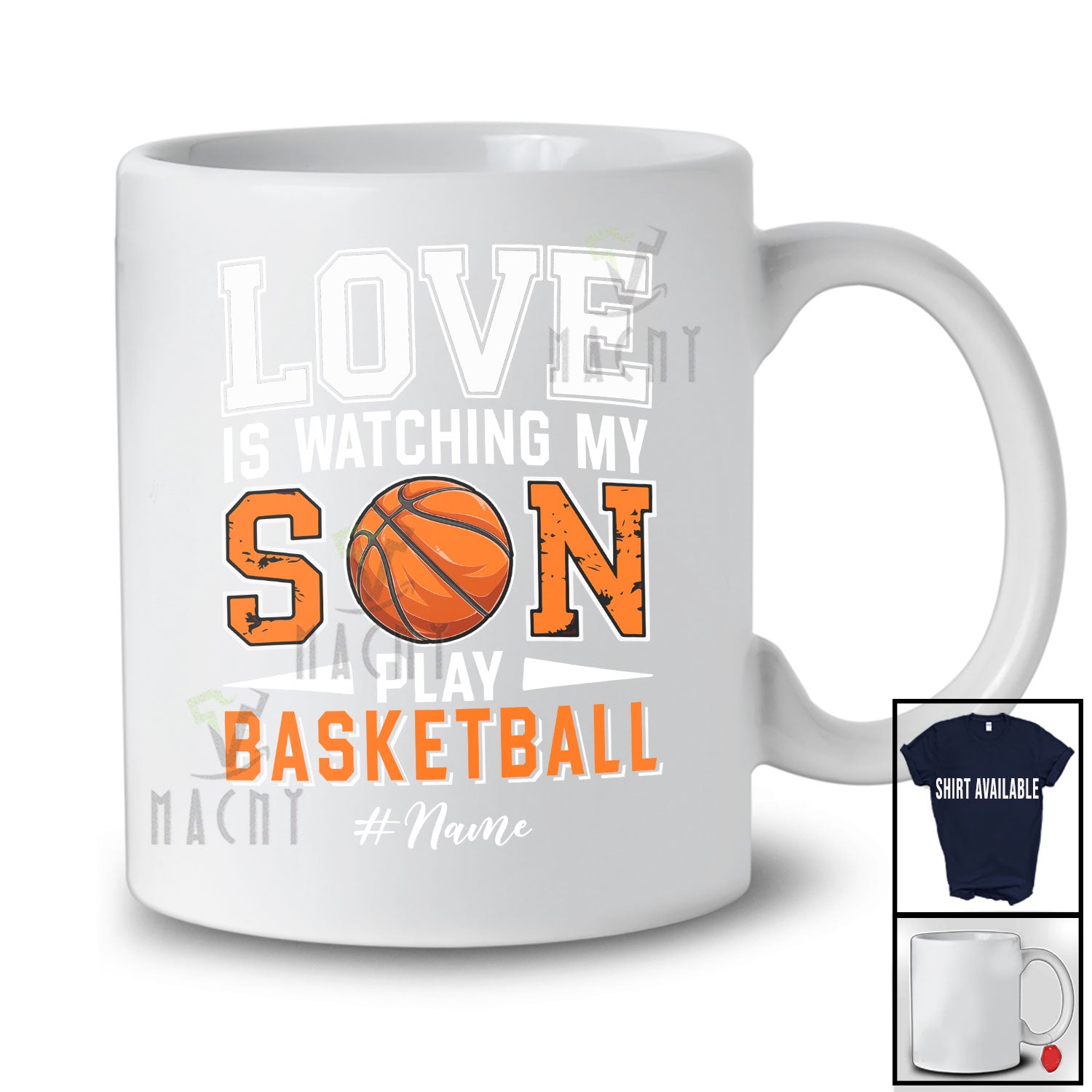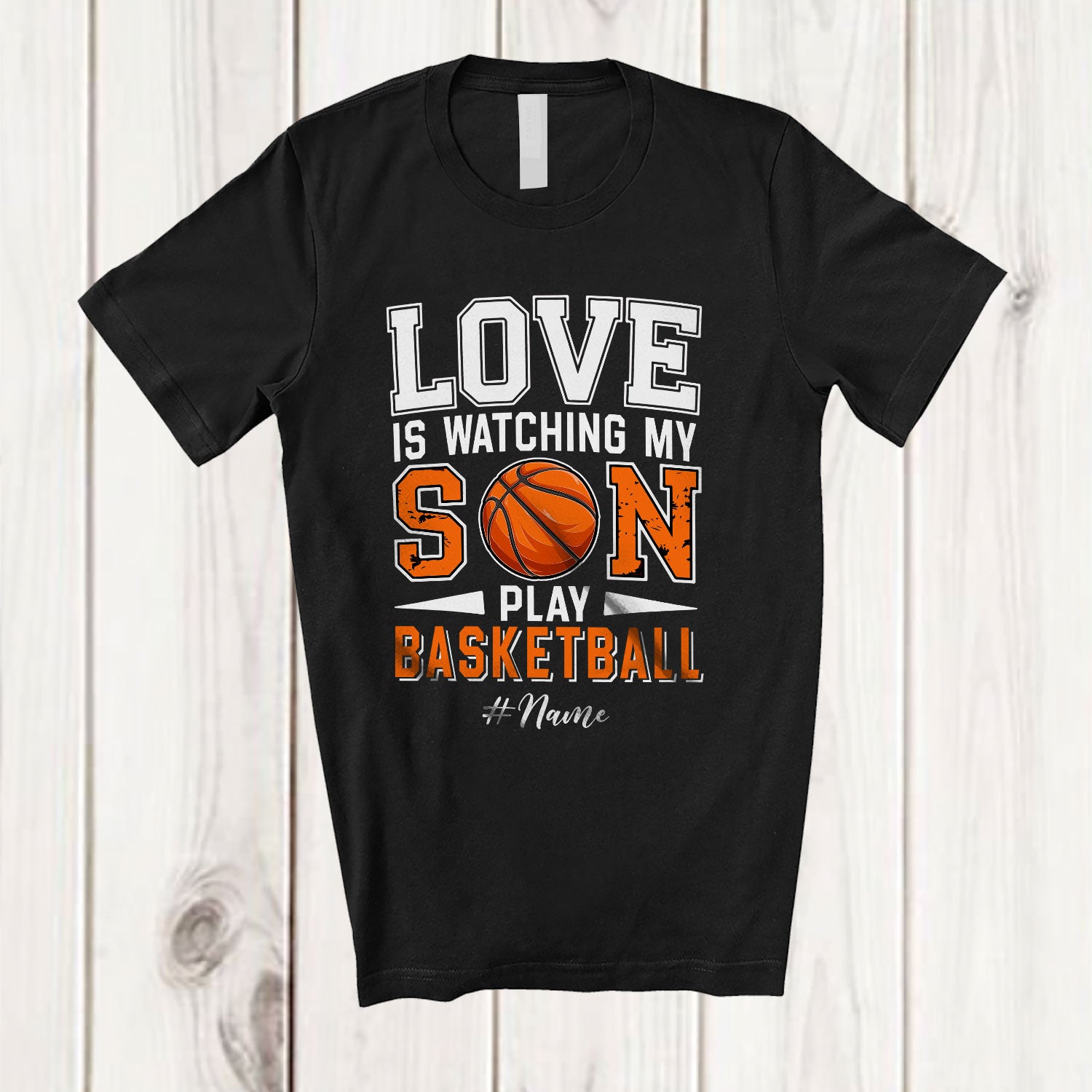 • Personalized Love Watching My Son Play Basketball; Proud Father's Day Custom Name Player T-Shirt. This cotton t-shirt is a durable staple product with a classic fit. One of the most popular items, it has a relaxed style made for everyday and casual wear.