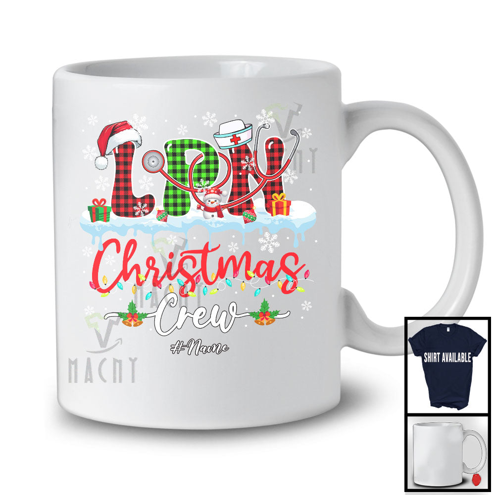 Personalized LPN Christmas Crew; Wonderful X-mas Red Green Plaid; Custom Name Nurse Group T-Shirt