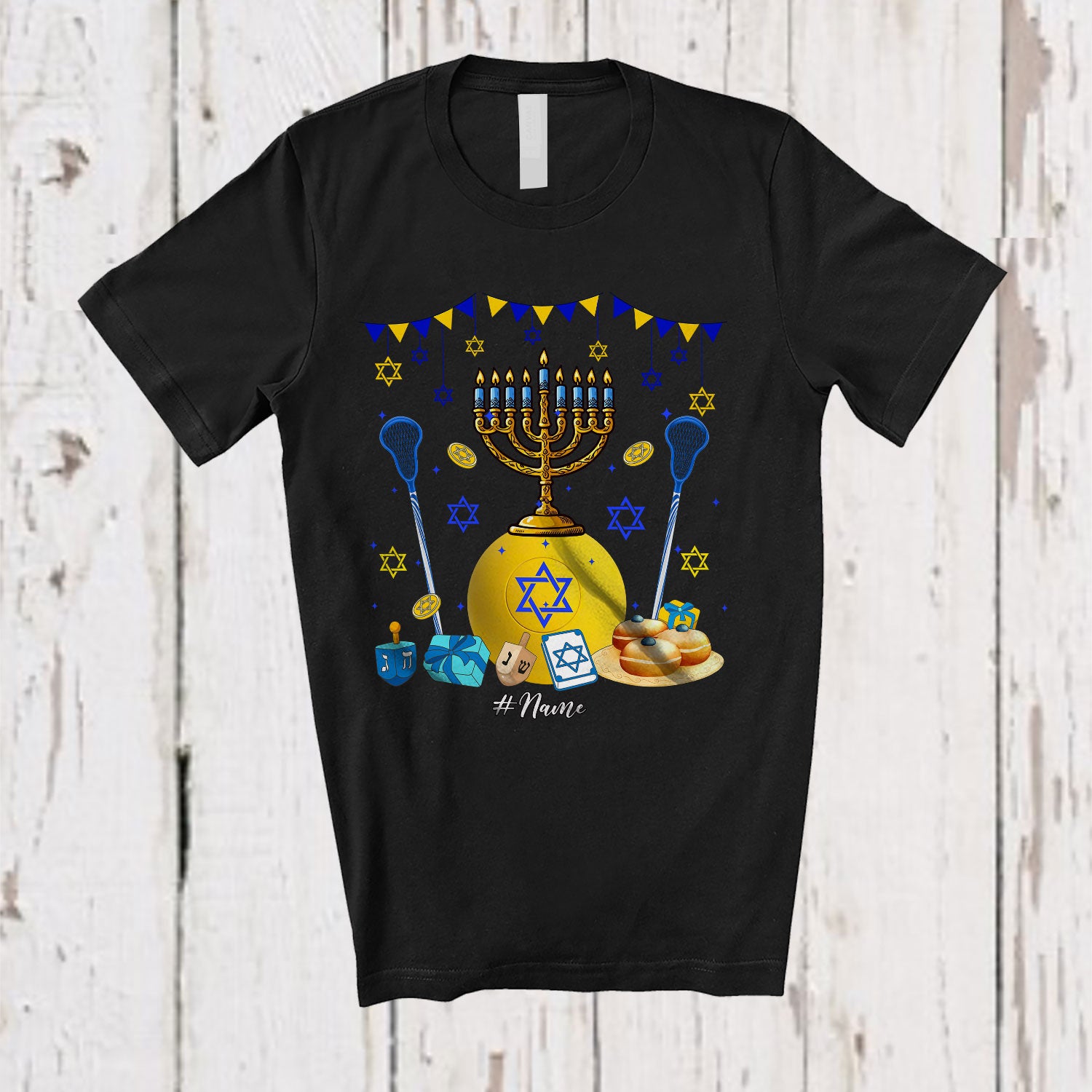 Personalized Menorah With Lacrosse Ball; Amazing Hanukkah Custom Name Sport Player Team T-Shirt