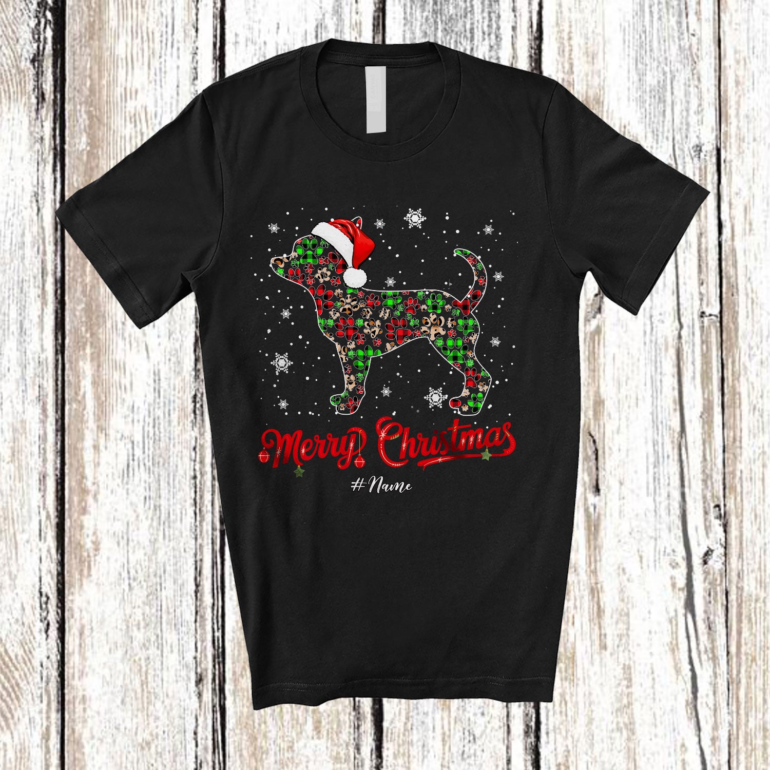 Personalized Merry Christmas; Awesome X-mas Custom Name Santa Chihuahua Shape Plaid Paws T-Shirt