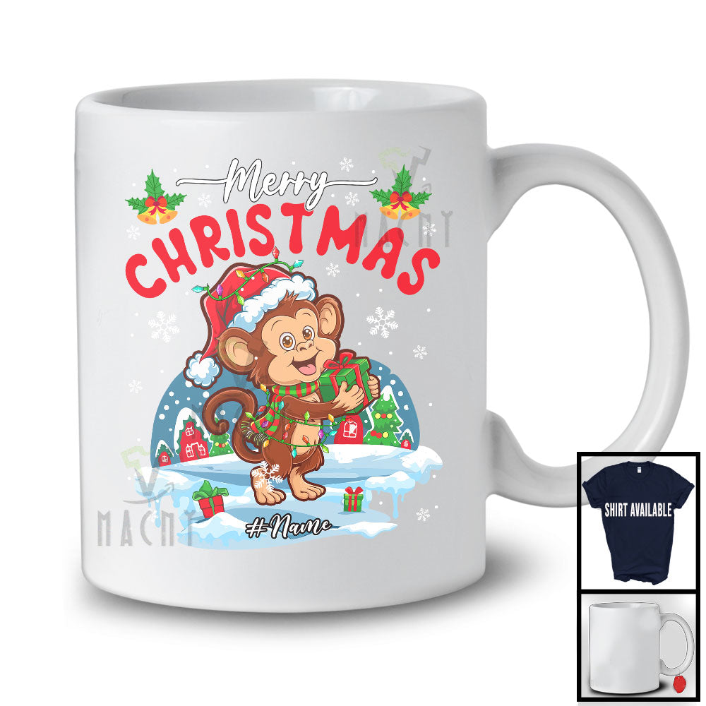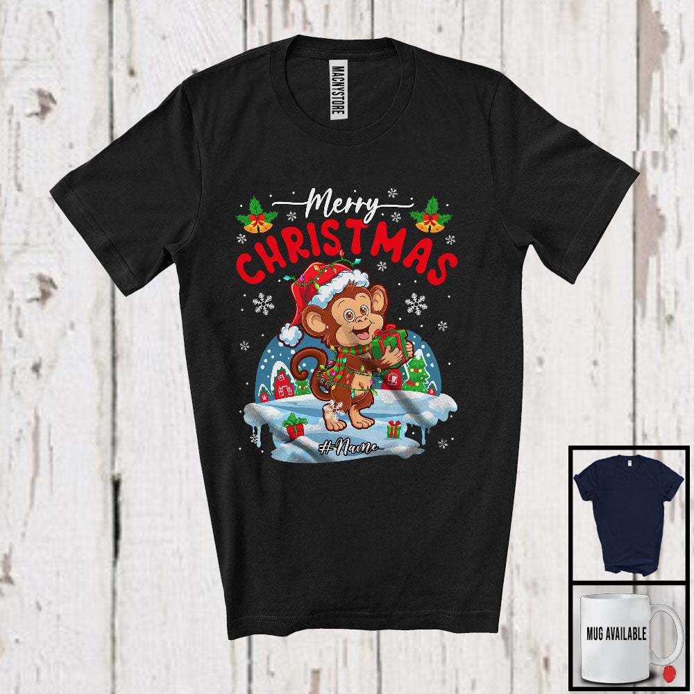 Personalized Merry Christmas; Wonderful X-mas Custom Name Santa Monkey; Wild Animal T-Shirt