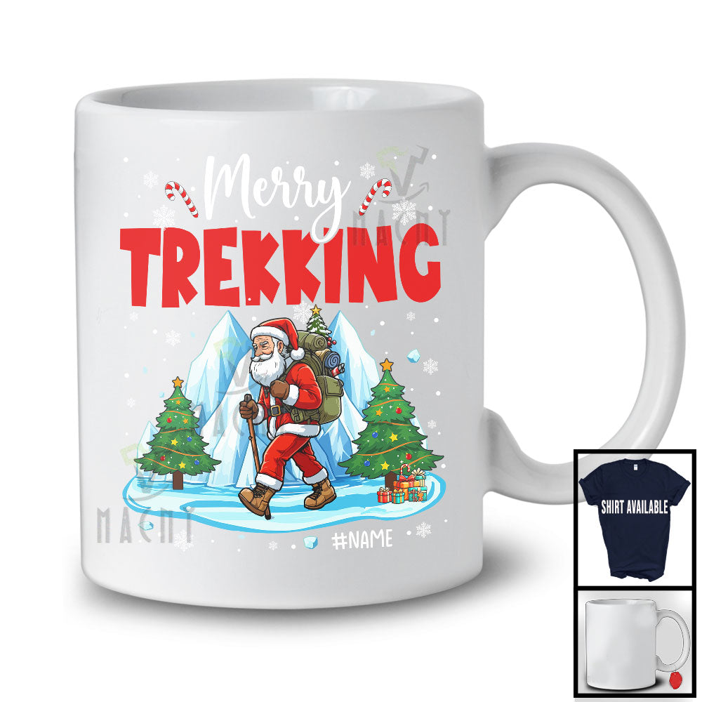 Personalized Merry Trekking; Fantastic Christmas Custom Name Santa Go Trekking; Winter Outside T-Shirt
