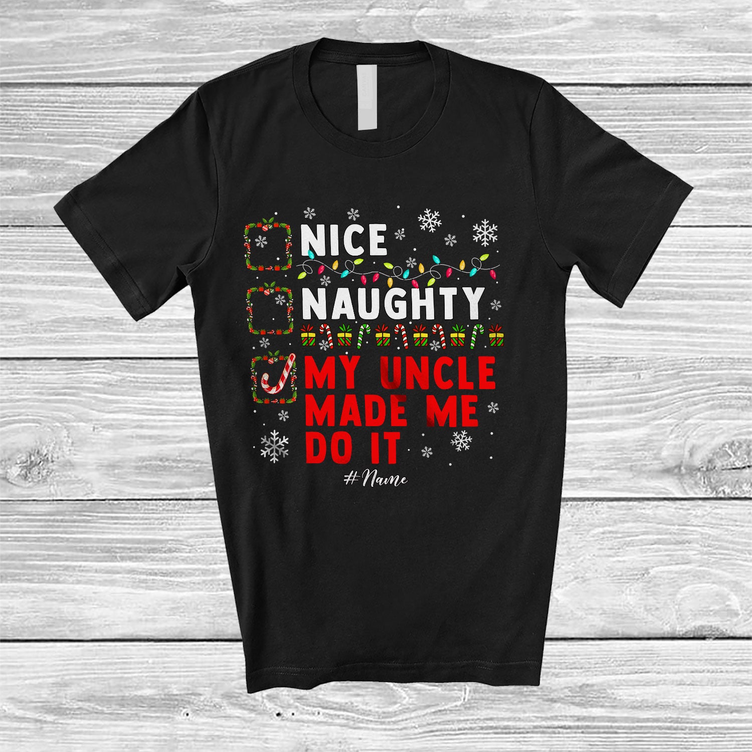 Personalized Nice Naughty Uncle Made Me Do It; Joyful Christmas Custom Name Family; X-mas Santa T-Shirt