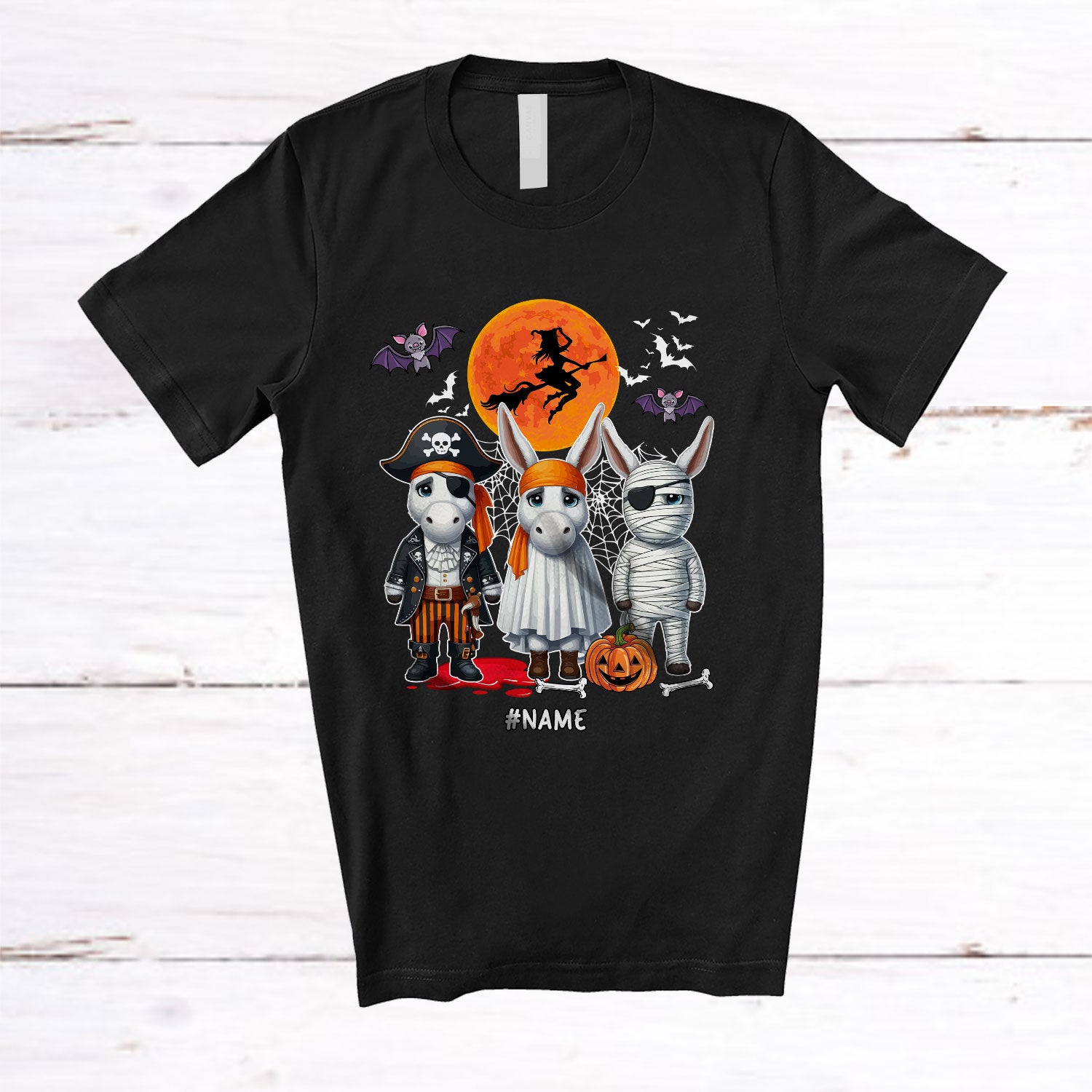 Personalized Pirate Mummy Boo Ghost Mule; Scary Halloween Custom Name Farm Animal Farmer T-Shirt