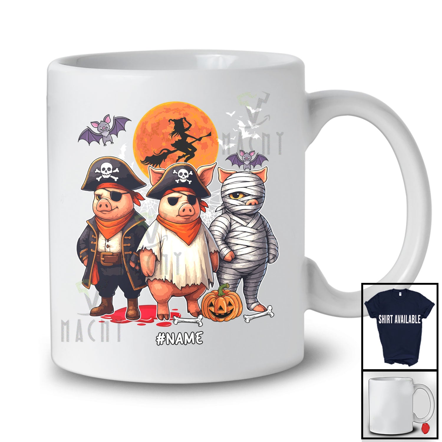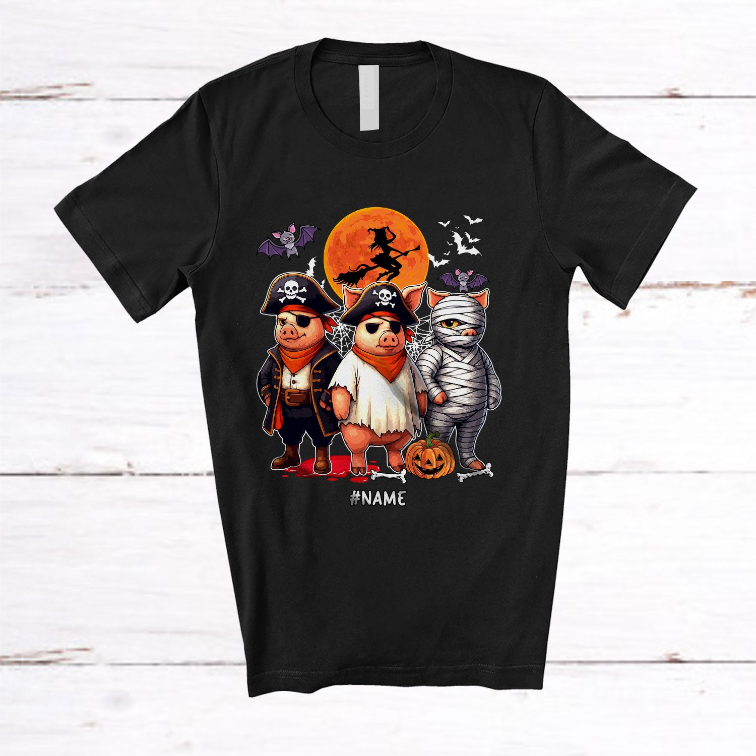 Personalized Pirate Mummy Boo Ghost Pig; Scary Halloween Custom Name Farm Animal Farmer T-Shirt. This cotton t-shirt is a durable staple product with a classic fit. One of the most popular items, it has a relaxed style made for everyday and casual wear.