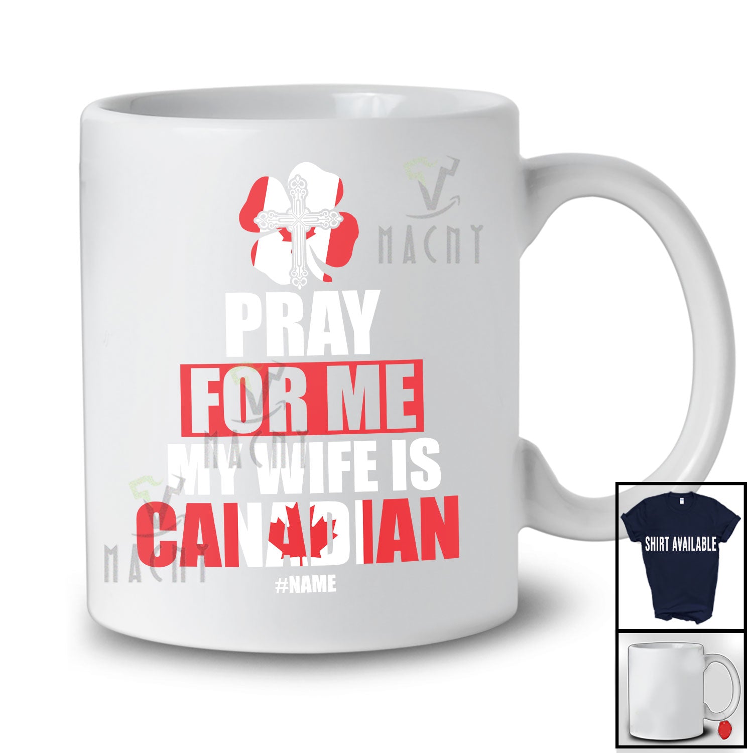 Personalized Pray For Me My Wife Is Canadian; Proud St. Patrick's Day Custom Name Canadian Cross T-Shirt. This cotton t-shirt is a durable staple product with a classic fit. One of the most popular items, it has a relaxed style made for everyday and casual wear.