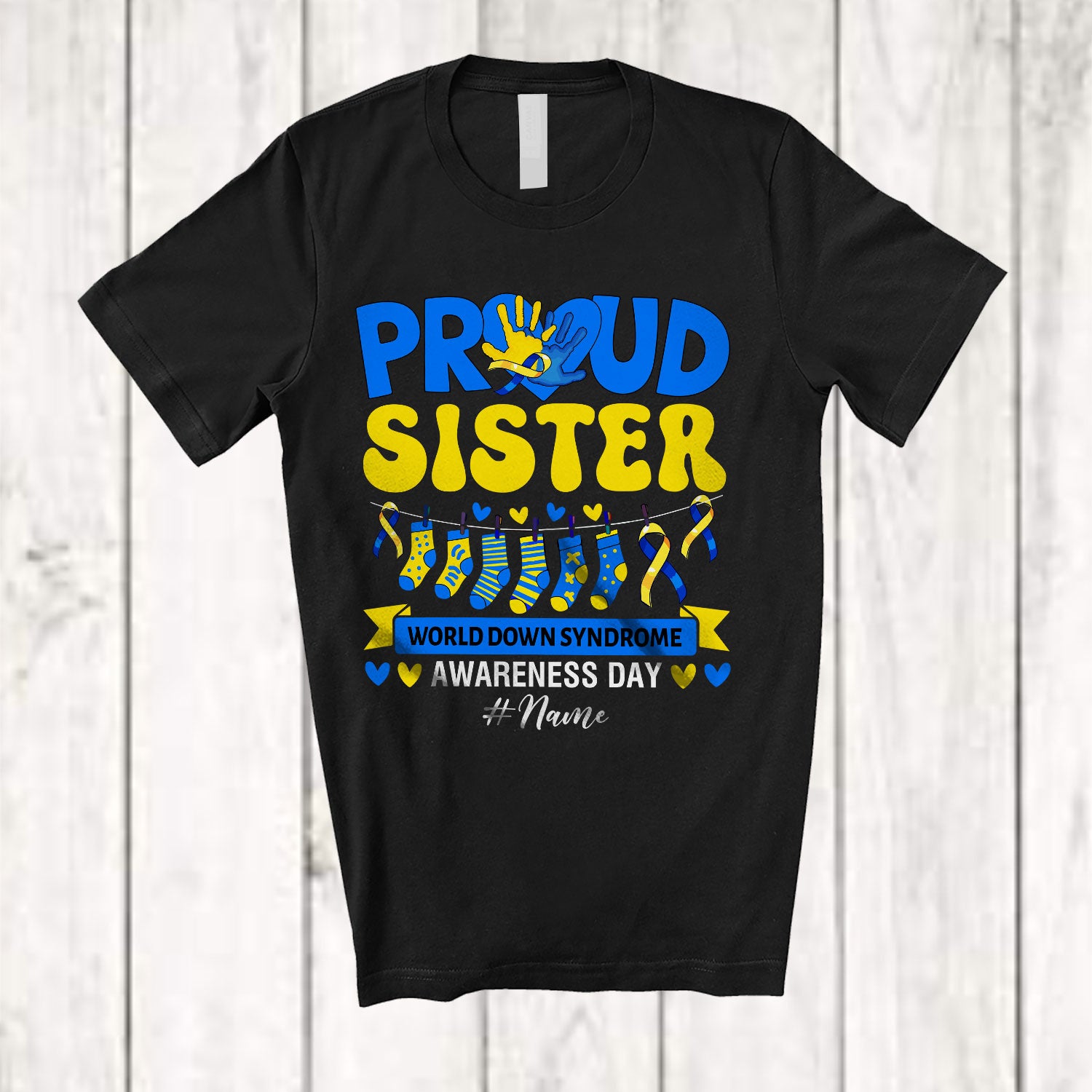 Personalized Proud Sister; Lovely Mother's Day Custom Name World Down Syndrome Ribbon T-Shirt