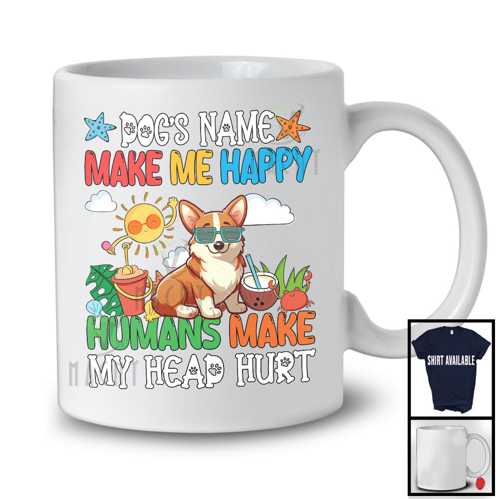 Personalized Puppy's Custom Name Make Me Happy, Lovely Summer Vacation Corgi Owner T-Shirt