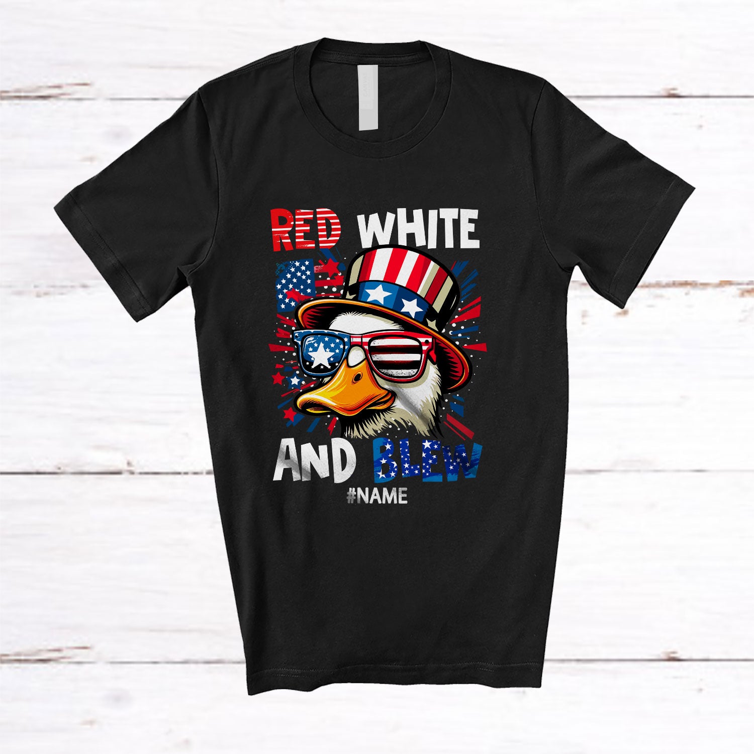 Personalized Red White Blew; Amazing 4th Of July US Flag Duck; Custom Name Patriotic Farmer T-Shirt. This cotton t-shirt is a durable staple product with a classic fit. One of the most popular items, it has a relaxed style made for everyday and casual wear.