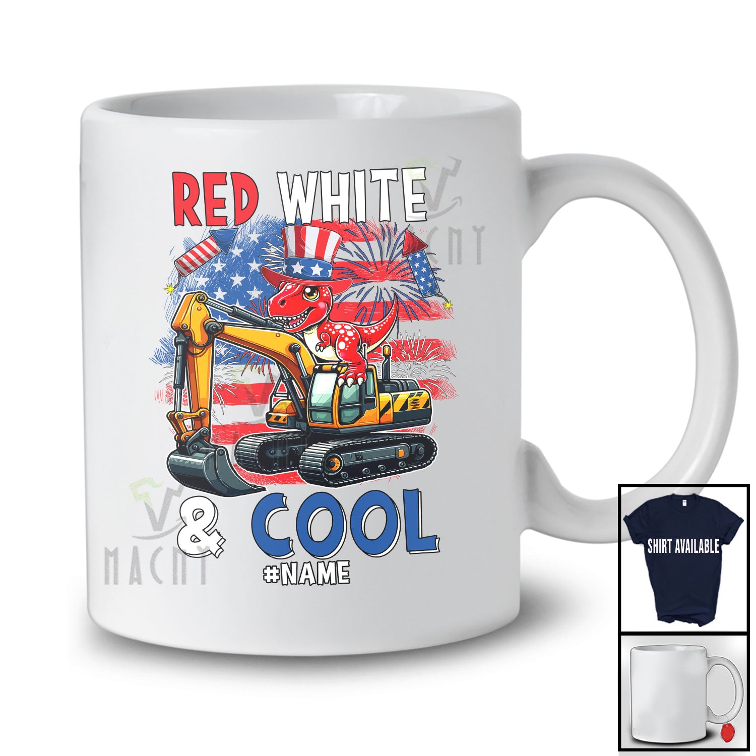 Personalized Red White & Cool; Lovely 4th Of July Custom Name T-Rex On Excavator; Patriotic T-Shirt. This cotton t-shirt is a durable staple product with a classic fit. One of the most popular items, it has a relaxed style made for everyday and casual wear.