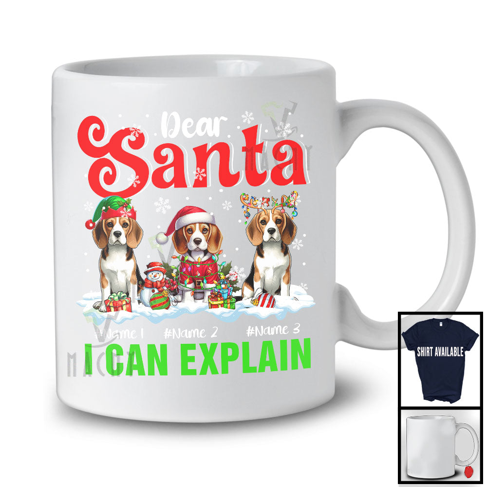Personalized Santa I Can Explain; Merry Christmas Custom Name Three Beagles; Snowing T-Shirt