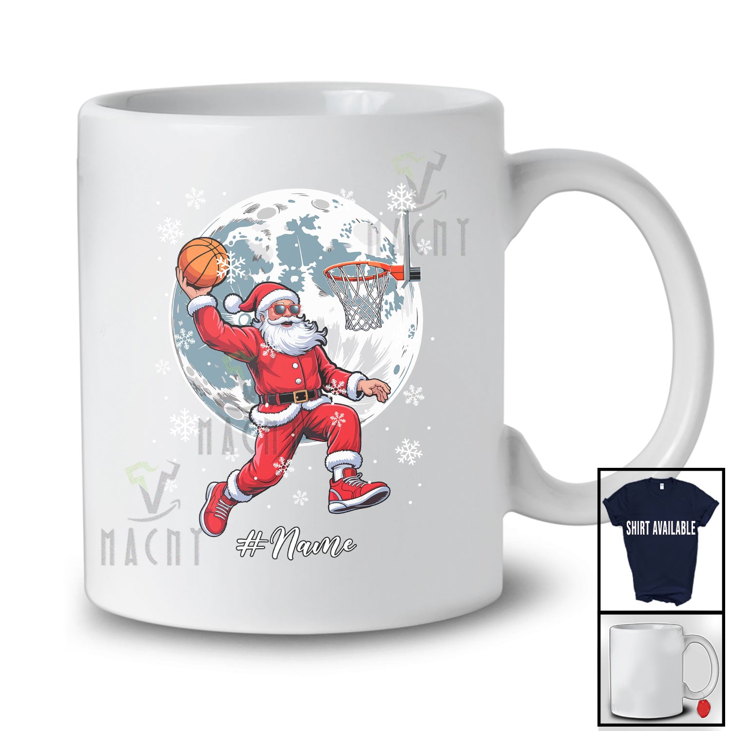 • Personalized Santa Playing Basketball; Amusing Christmas Moon Custom Name Sport Player T-Shirt. This cotton t-shirt is a durable staple product with a classic fit. One of the most popular items, it has a relaxed style made for everyday and casual wear.