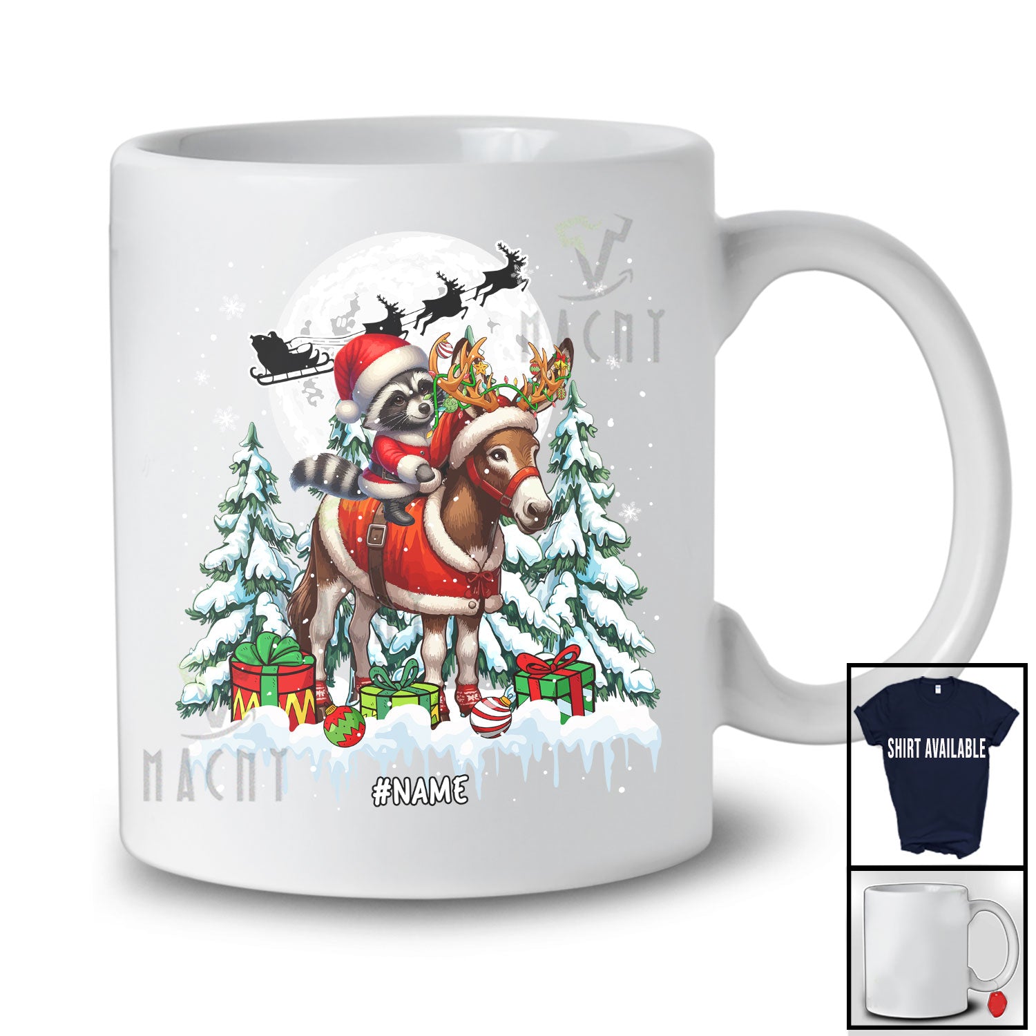 Personalized Santa Raccoon Riding Donkey; Lovely Christmas Tree Custom Name Farmer Family T-Shirt