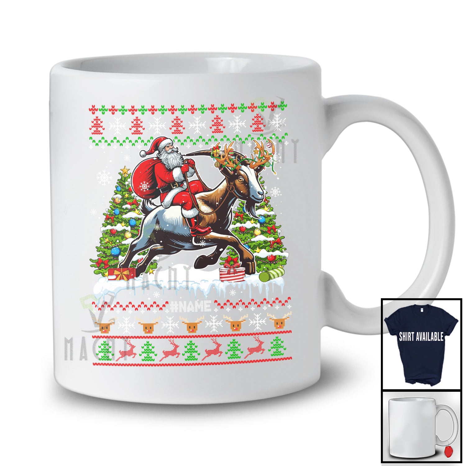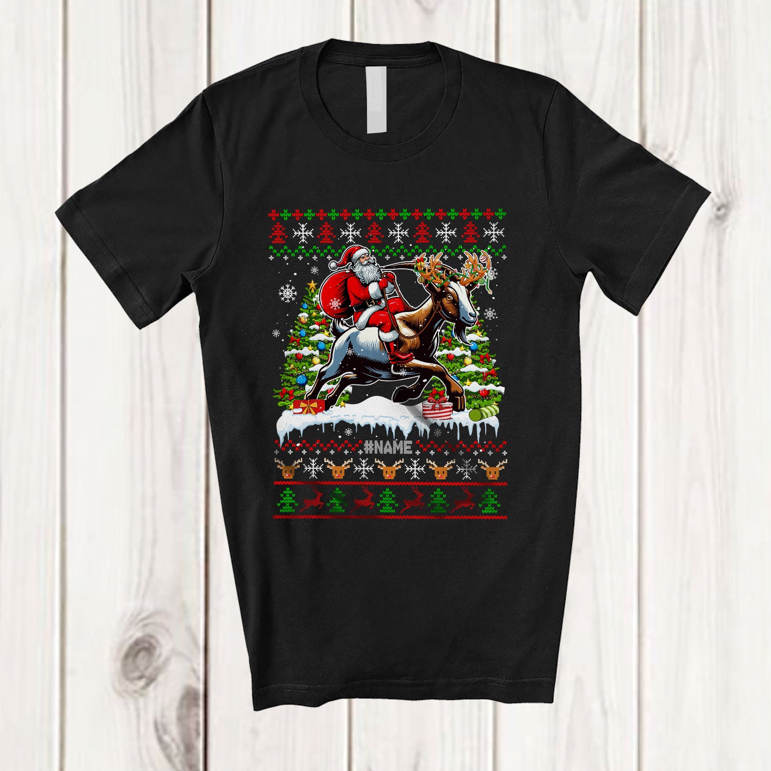 Personalized Santa Riding Goat; Amusing Christmas Sweater Goat; Custom Name Farmer Farm T-Shirt
