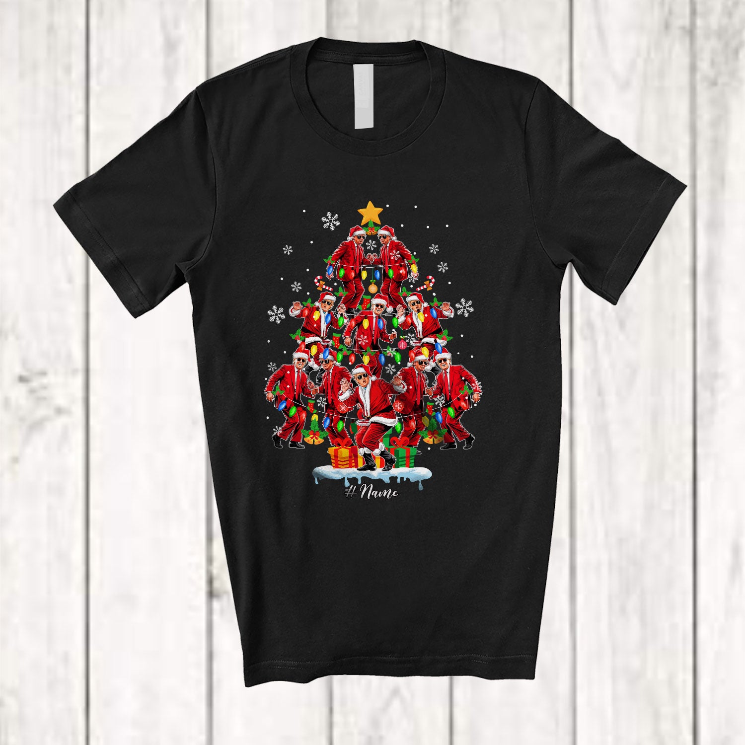 Personalized Santa Trump Dance Tree; Joyful X-mas Lights President Back; Custom Name Family T-Shirt