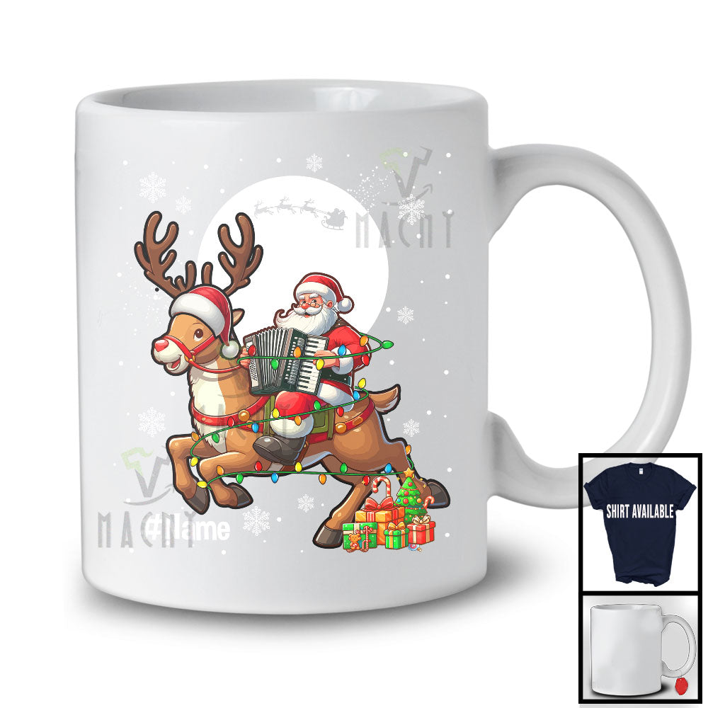 Personalized Santa With Accordion Riding Reindeer; Joyful Christmas Custom Name Musical Instruments T-Shirt