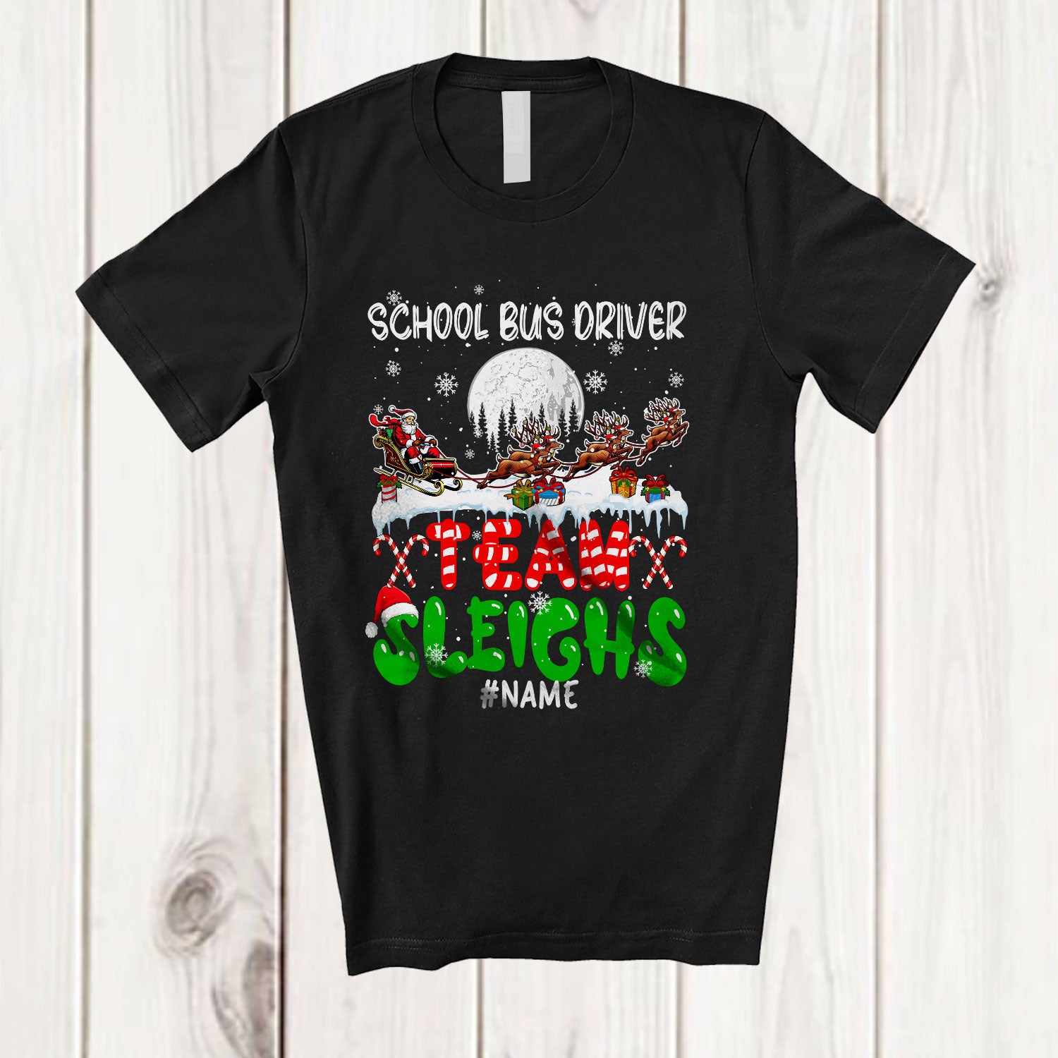 Personalized School Bus Driver Team Sleighs; Joyful Christmas Santa Sled Reindeer; Custom Name Jobs T-Shirt