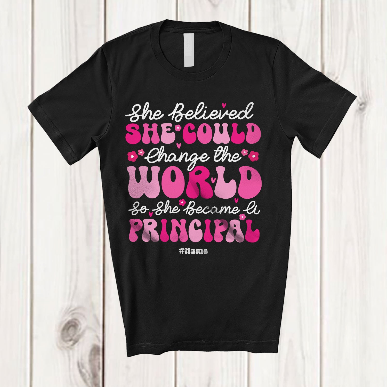 Personalized She Believed Change The World; Lovely Custom Name Principal Jobs Proud T-Shirt